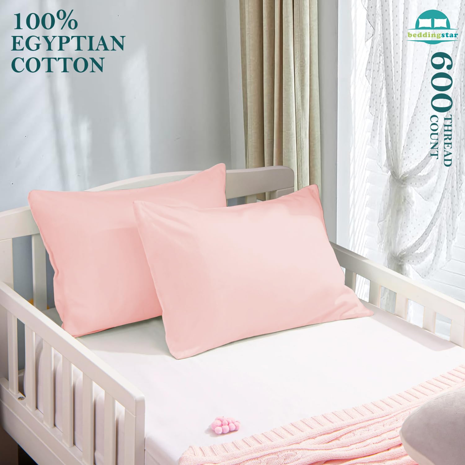 Youth Pillowcase 16x22 Set of 2 Kids Travel Pillow Case Cover with Envelope Closure 600 Thread Count 100% Egyptian Cotton Soft & Skin Friendly Youth Toddler Pillowcase 16x22 Inches, Blush Pink