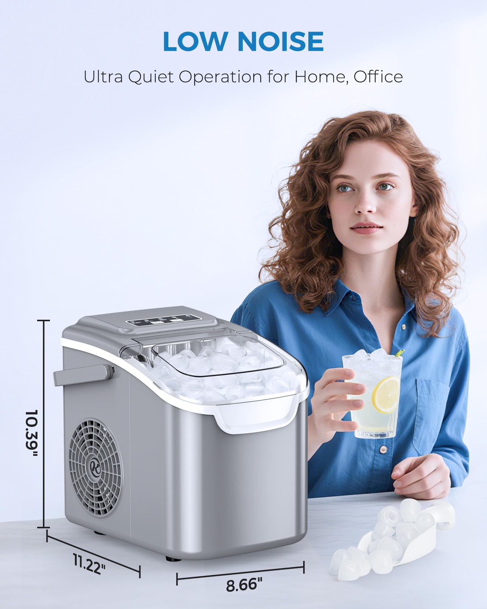 PORTABLE DESIGN& PERFECT BULLET ICE: Ready to use right out of the box. Includes removable ice basket, scoop, and drain pipe for easy water change. Compact size fits anywhere.