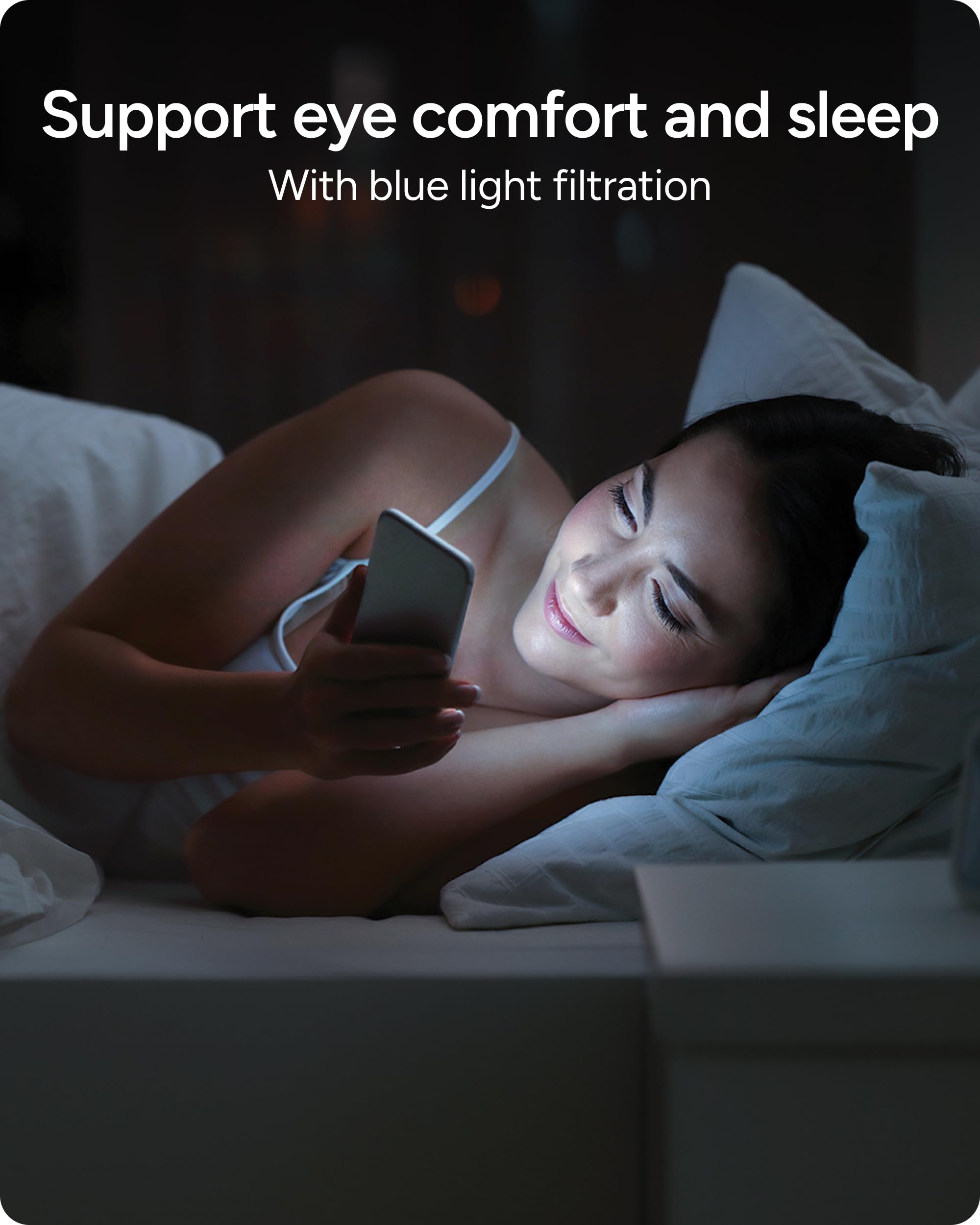 SLEEP BETTER WITH BLUE LIGHT FILTRATION: Radiance Protection Factor 60 technology filters out harmful blue light that causes eye strain and disrupts sleep, ensuring more comfortable, healthier screen time