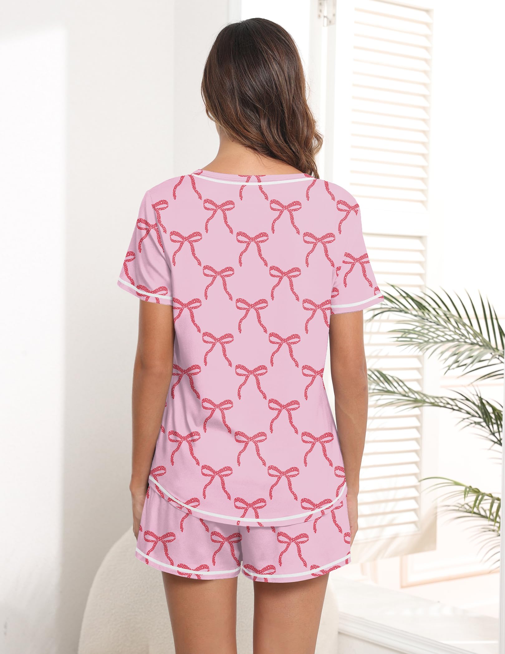 Material: 95% Polyester + 5% Spandex. Ekouaer womens short pajama sets are soft, lightweight, easy care, good elasticity, not easy to wrinkle, skin-friendly, breathable and comfortable