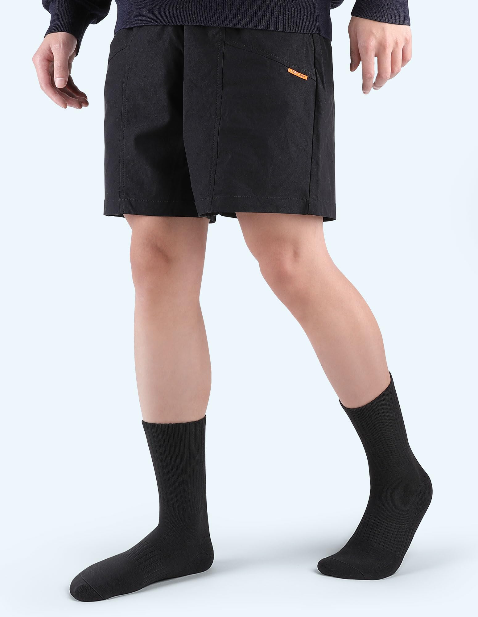 [HIGH PERFORMANCE CREW SOCKS]: 86.5% Polyester, it's not easy distortion or pilling, abrasion resistance, thickness and smoothness are better, also can avoid socks from slipping down, enhanced elastane provides additional nonslip security, and suitable to wear . 13.5% spandex composition functions moisture absorbent and sweat wicking.