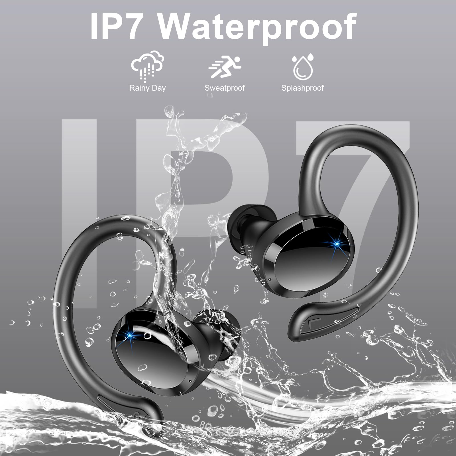 【Comfortable Sports Earhooks, IP-X7 Waterproof】Unlike most sport headphones wireless, Q38 headphones are designed with a soft, ultra-light and flexible 45° earhook structure, which can fit your ears smoothly. And a single earbud is as light as 8g, equipped with 3 different sizes of high-quality silicone earplugs (S/M/L). Also with IP-X7 certified waterproof technology, you can protect the sport earbuds from sweat and rain during sports or daily use. Best choice for workout, running, gym.