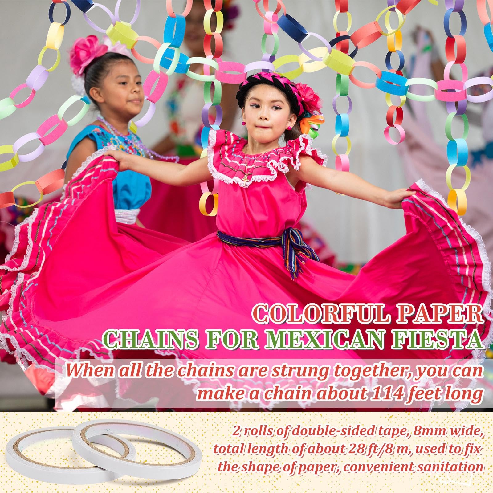 Abundantly Colorful Paper Strips: the color palette is bountiful with our 600 sheets paper chain strips, equipped with 2 rolls of double sided tapes; The abundant quantity means you can create a paper chain that can stretch up to 28 feet in total length; The multitude of colors available broadens your design spectrum, bringing out ingenuity and creativity