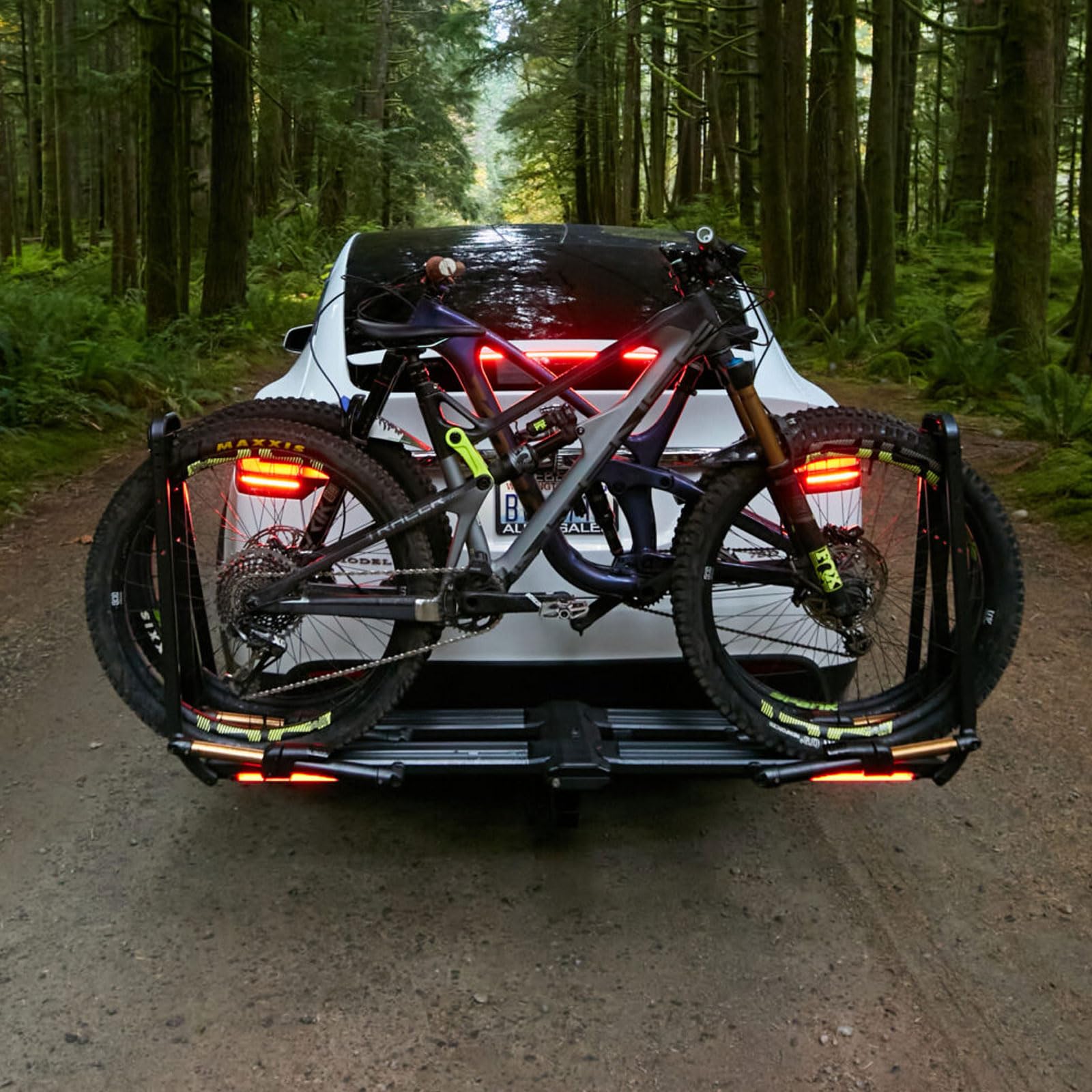 INTEGRATED LED LIGHTING - Safety meets convenience with the Piston Pro X's built-in LED taillights; These lights connect and sync automatically when the rack is assembled, enhancing visibility during night drives; The system easily connects to your vehicle using the included flat 4-pin connector, providing peace of mind for both you and other drivers on the road