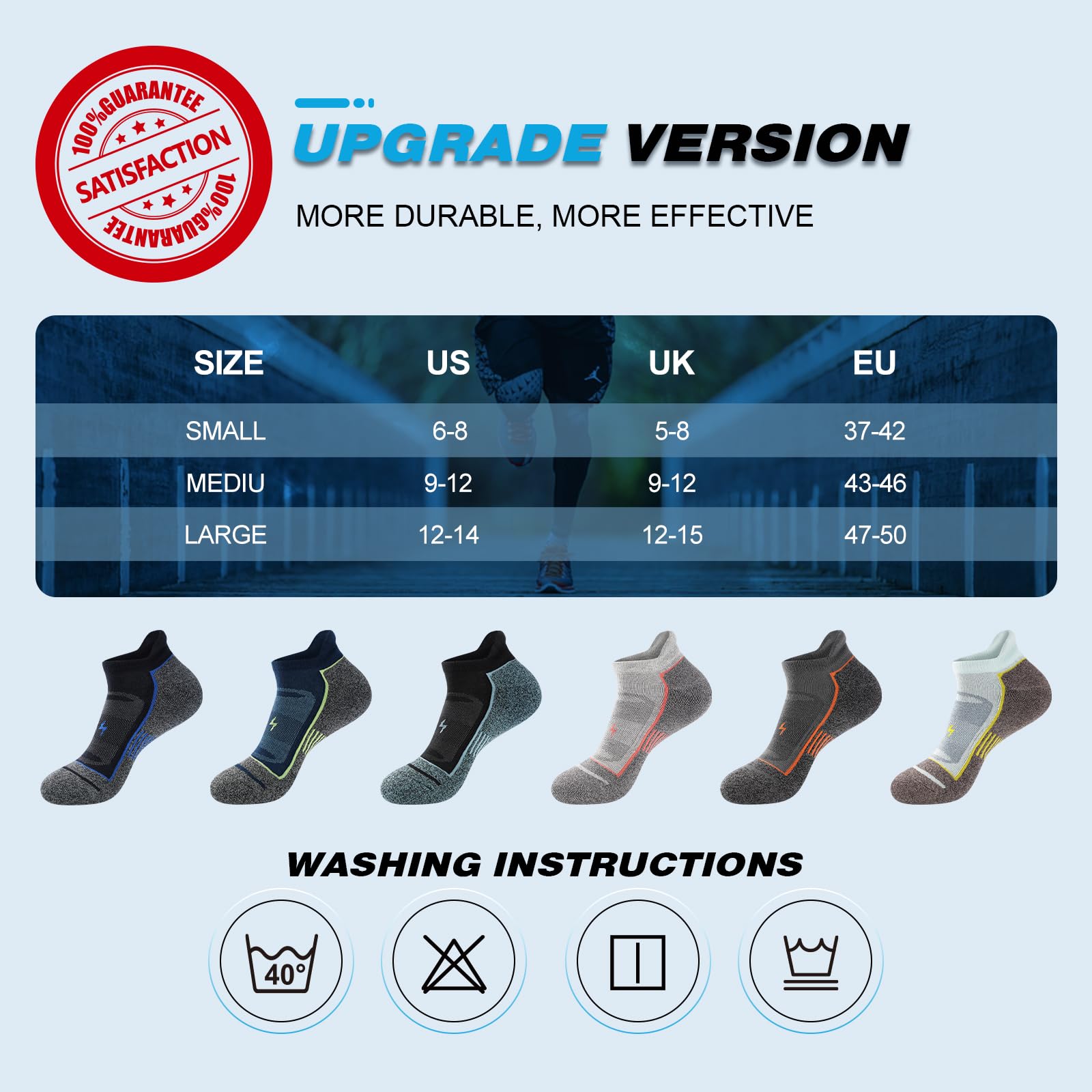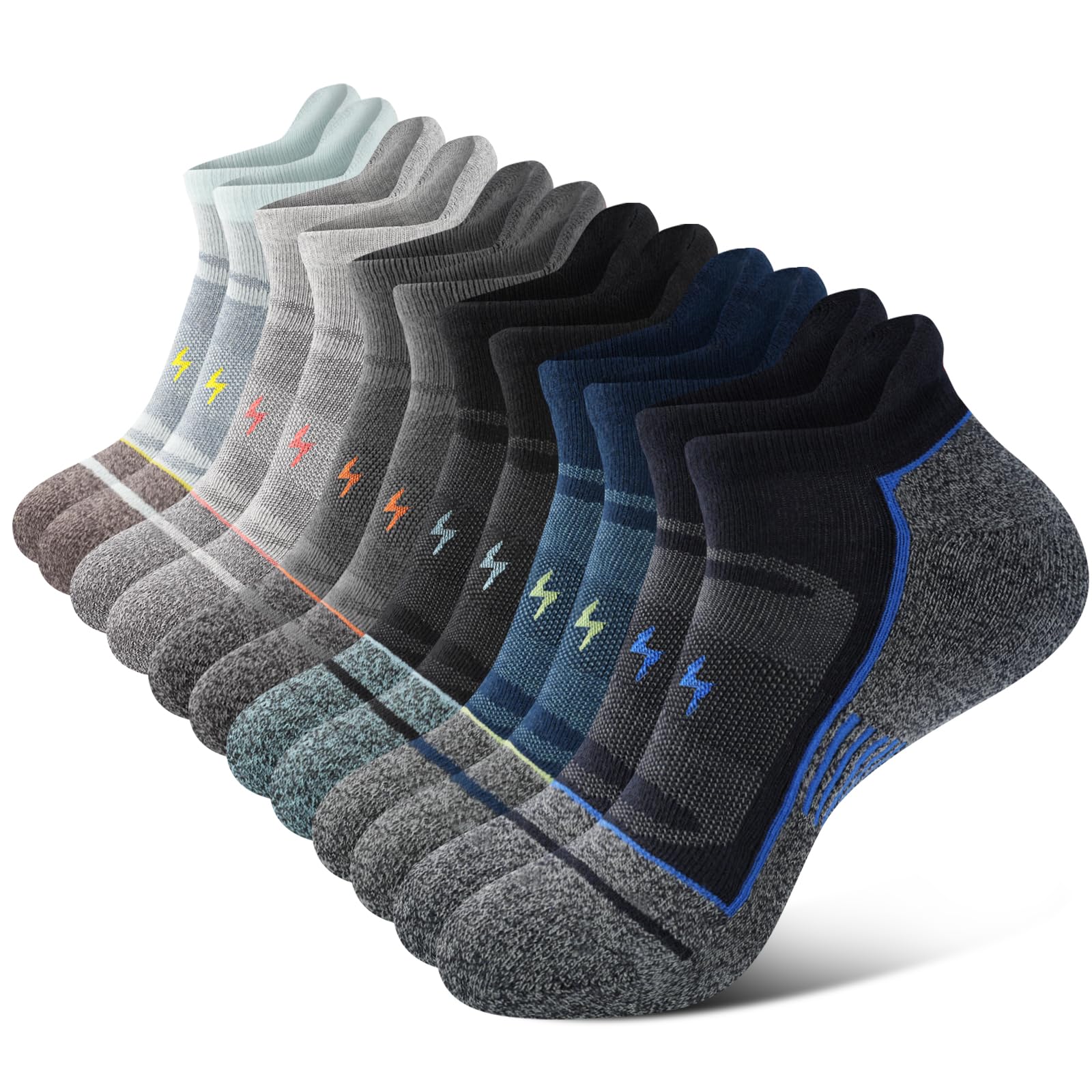 Breathable Running Socks: Designed for maximum airflow and moisture wicking, these men's ankle socks keep your feet dry and cool with mesh arch ventilation. Their excellent stretch and durability ensure long-lasting wear without worry