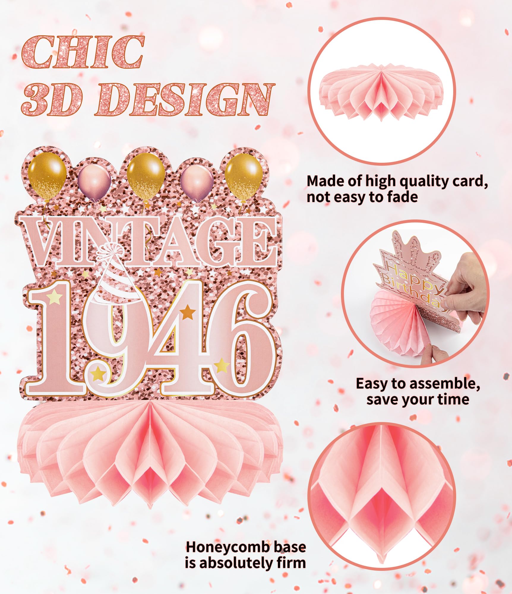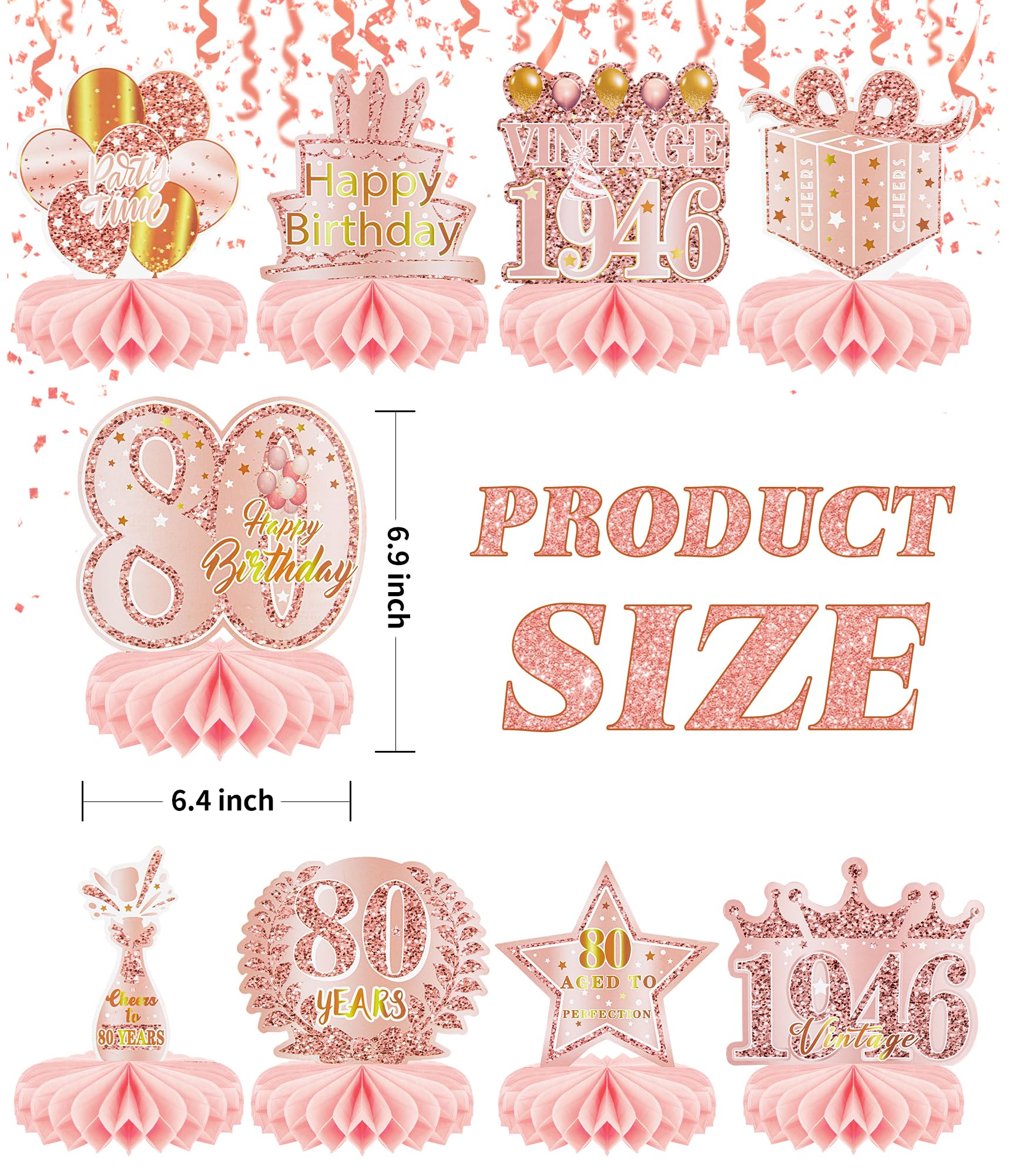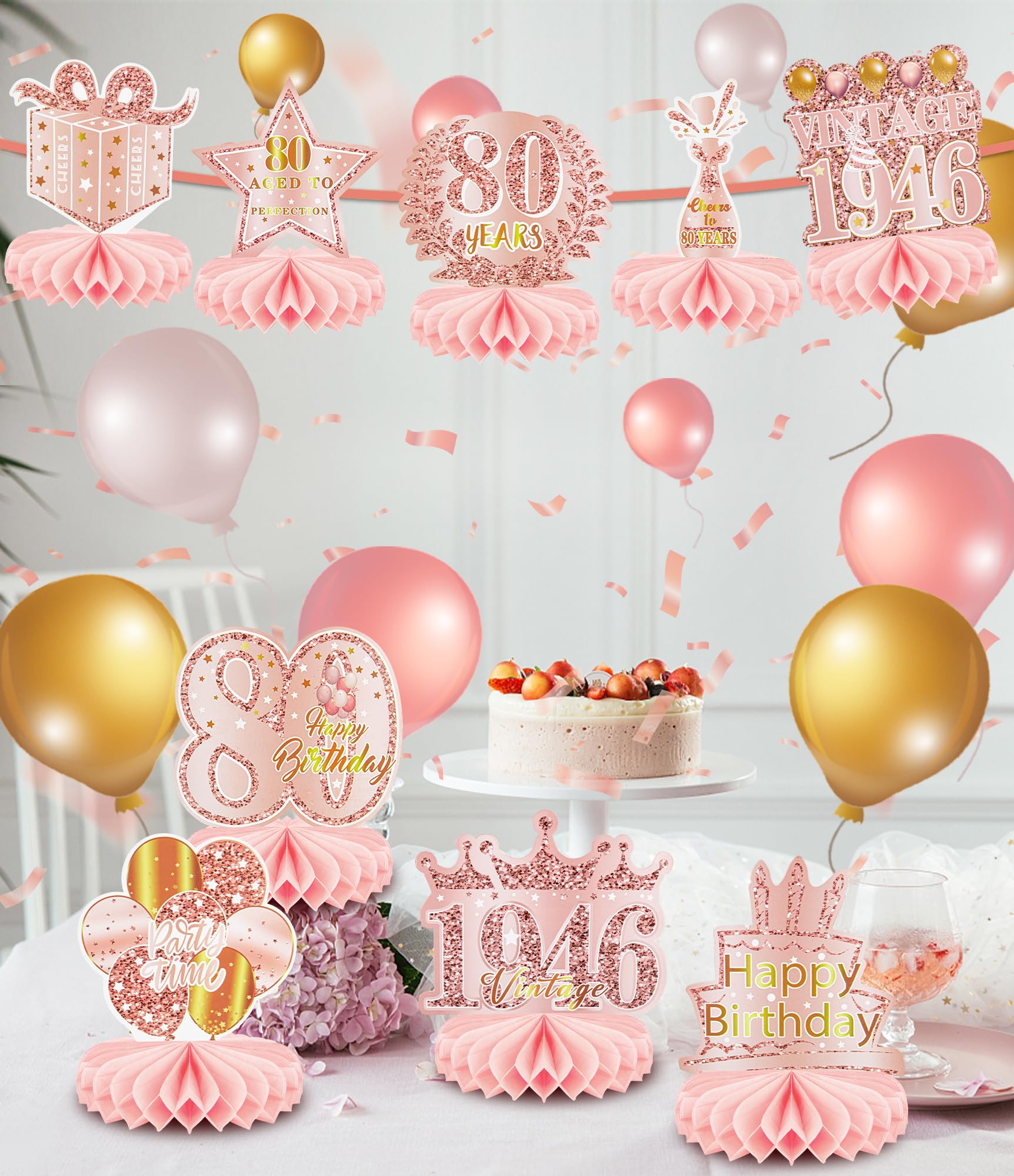 🎁PERFECT 80th BIRTHDAY PARTY DECORATIONS: The 80th birthday honeycomb centerpieces for women are suitable for women's 80th birthday party. You can use it as a party decorations or as photo background, so that everyone will love these chic designs. 80th birthday centerpieces for tables can decorate your home very well