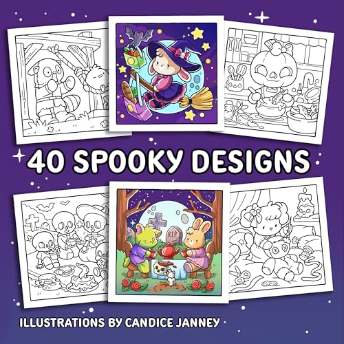 Cozy Scenes with a Spooky Twist This cute coloring book for adults and teens includes a variety of spooky scenes with adorable animals in cozy situations. Our coloring pages are drawn with thick lines, so they are easy-to-color with markers. 40 Unique Images. Cute full-page designs on white 8.5” x 8.5” pages. Relaxing Designs. Experience mindfulness and calmness as you add beautiful colors. Single-sided Pages. Designs printed on one side of paper to protect the other designs. For Adults and Teens. Plenty of fun details paired with bold lines for easy coloring. Wonderful Variety. Grim reapers, cute witches, gothic romance, and so much more!