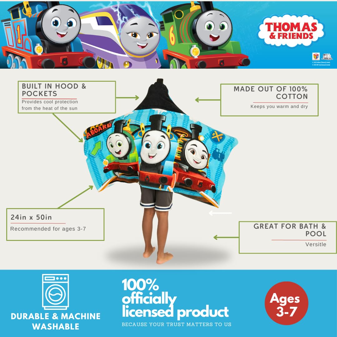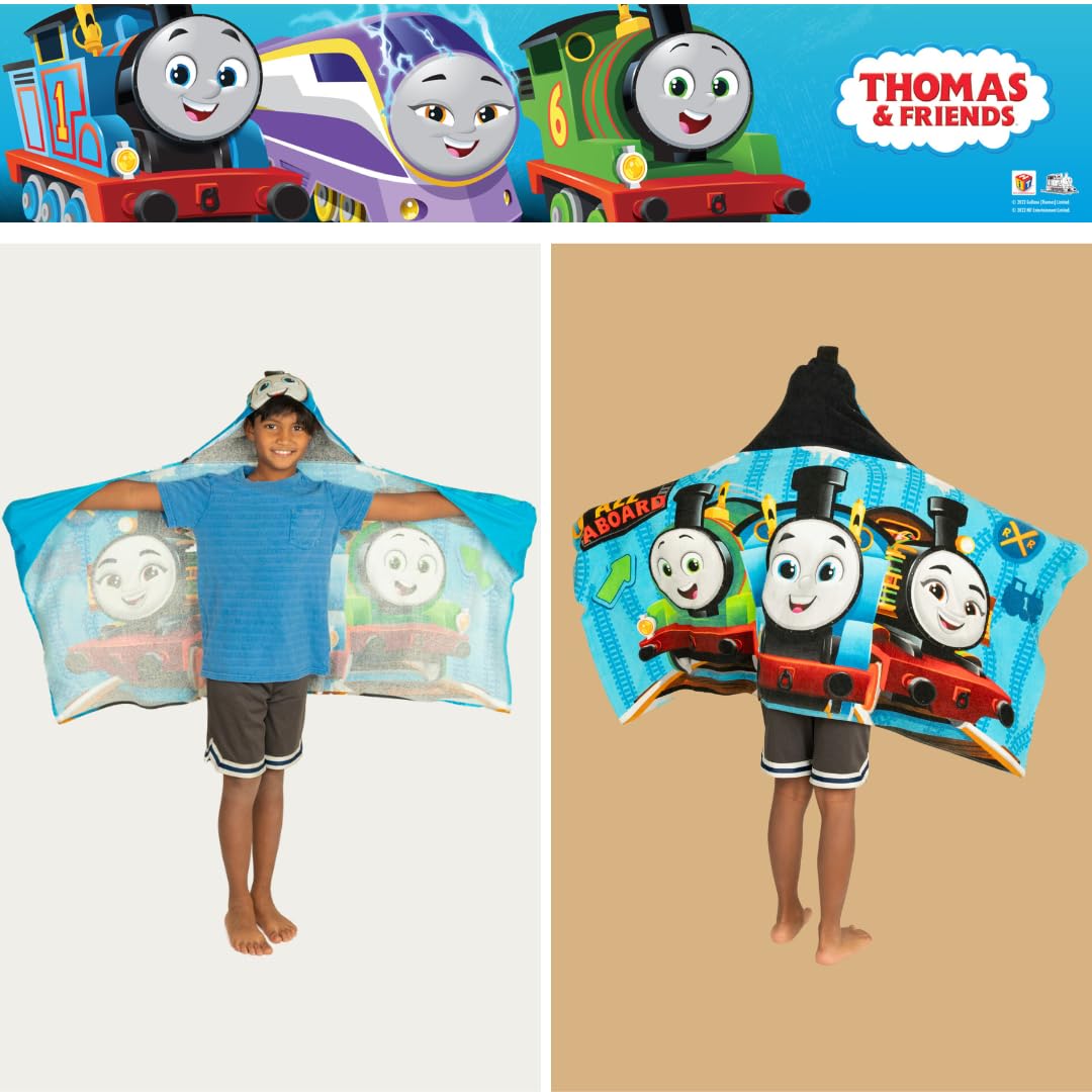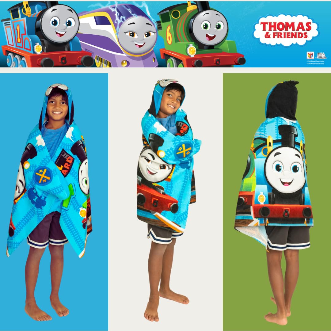 THOMAS AND FRIENDS DESIGN: Thomas and Friends are out in full force on this cute and cuddly hooded towel. Wrap your child up in action-packed comfort and style with help from Thomas the Tank Engine and his crew from the popular animated series.