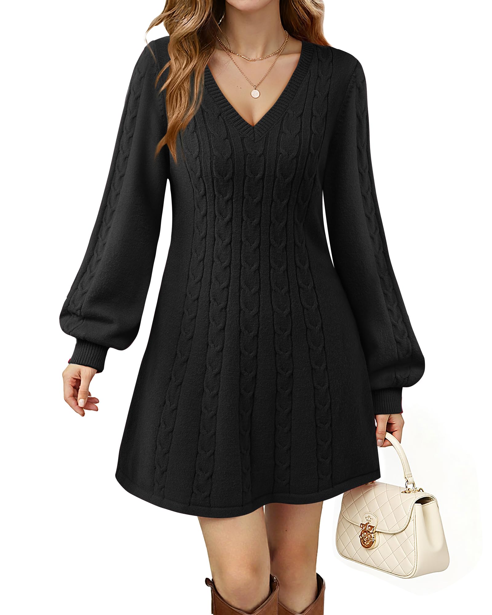 Storage mode: It is normal to receive a V-neck sweater with slight wrinkles, wash by hand or cold water machine, wash dark and light sweaters separately, avoid staining, it is recommended to lay flat to avoid deformation,(it is recommended to wash in the laundry bag);Sweater dresses are more loose, if you want to slim, it is recommended to buy a smaller size! Casual elegant and stylish knitted dresses to warm you all winter and fall!
