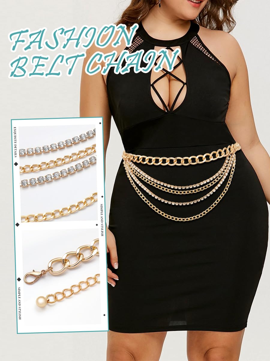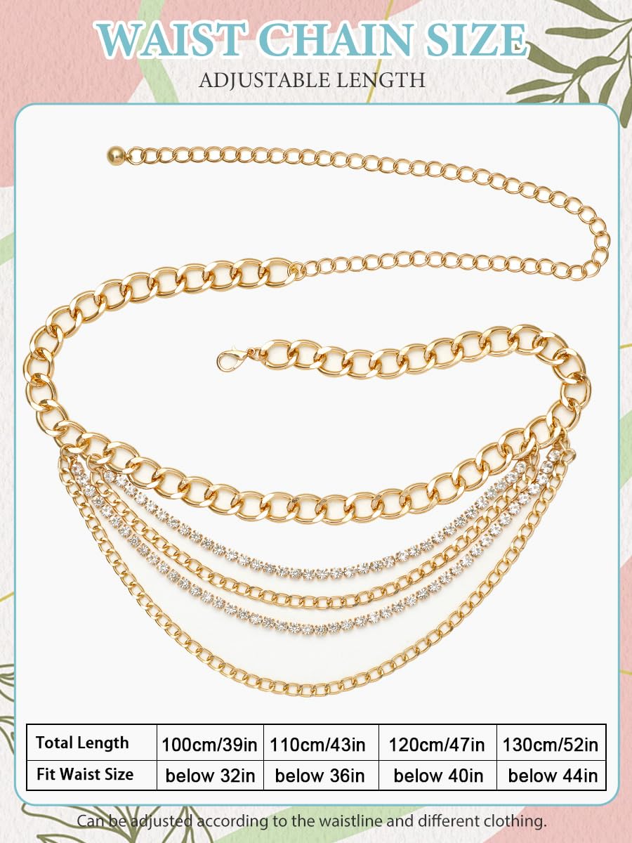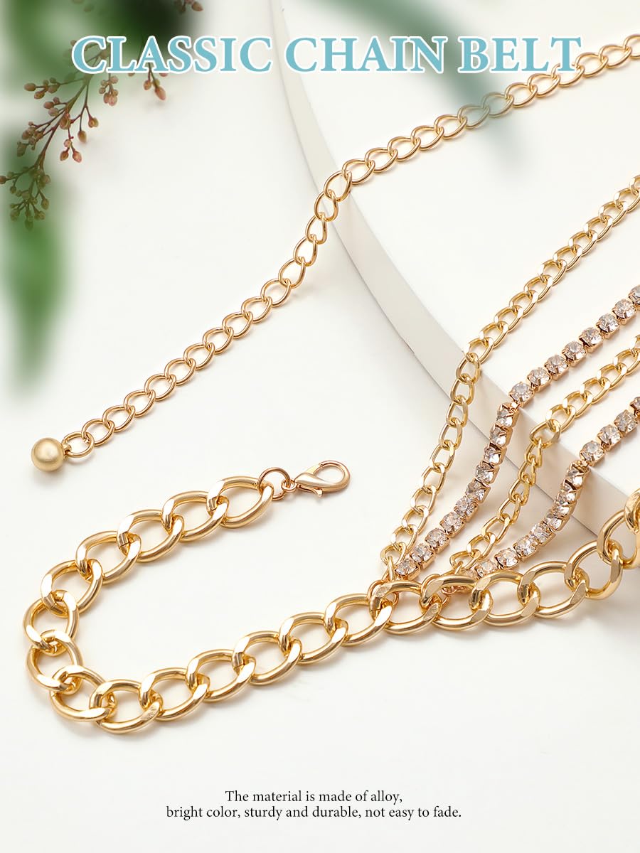 Fashion Design: The metal belt is made of fashionable layered chains with sparkling rhinestones and a round ball decoration at the end. Utilizing the chain element, the style is stylish and very trendy.