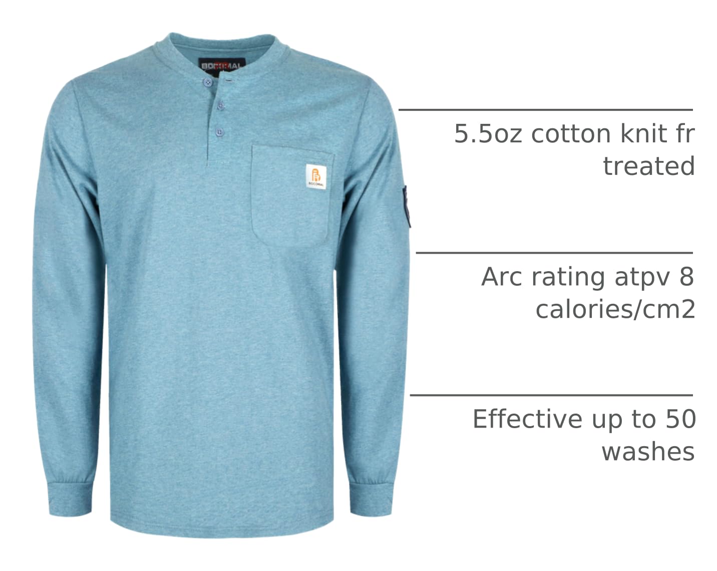 FR MATRIALSοΌ5.5OZ Cotton Knit FR Treated,FR Buttons,FR Sewing Threads!Clear FR Tag on arms and bottom front.More FR info On Neck Tag About UL Certification.We Attached A Small Sample Inside Package For Cunstomers Simple FR Try