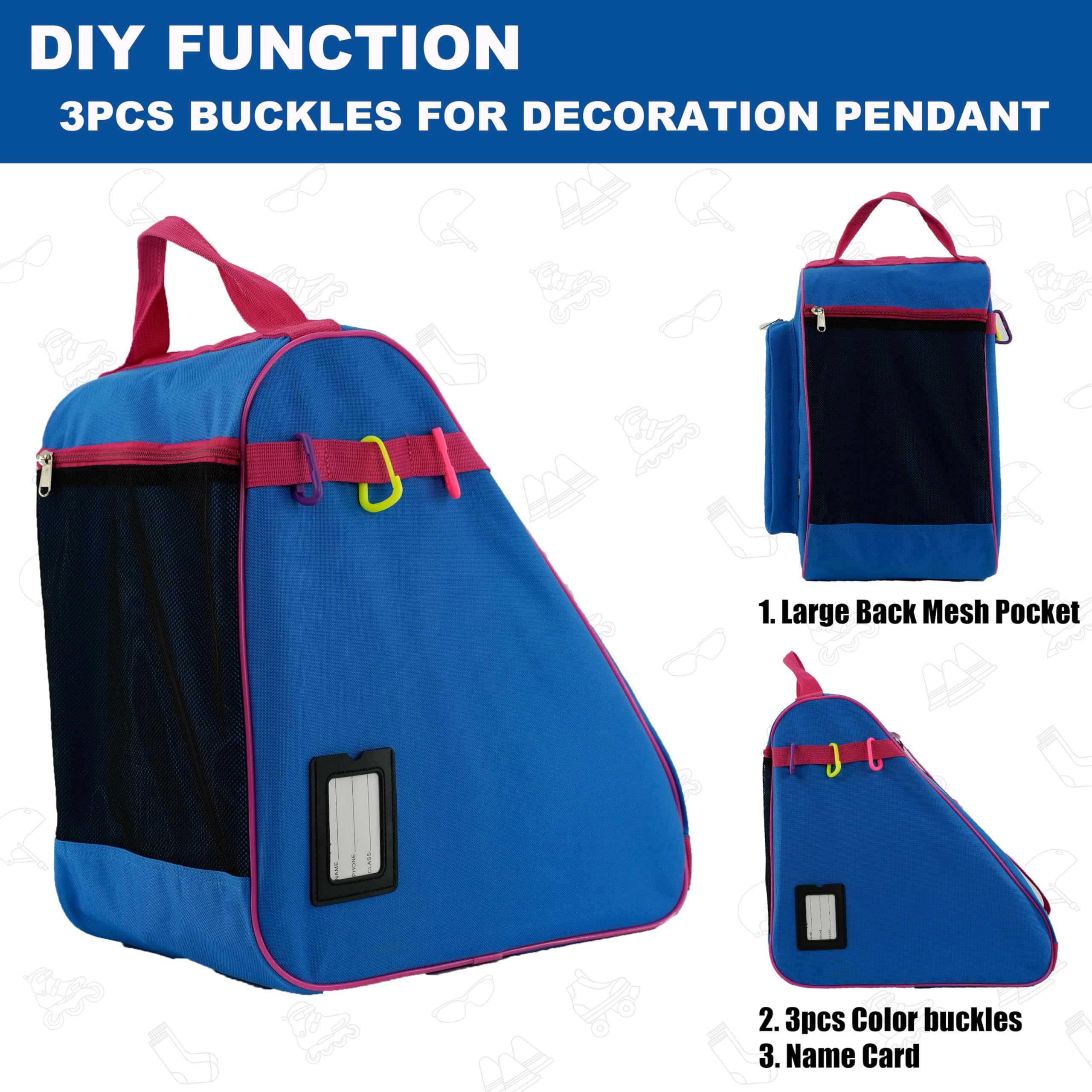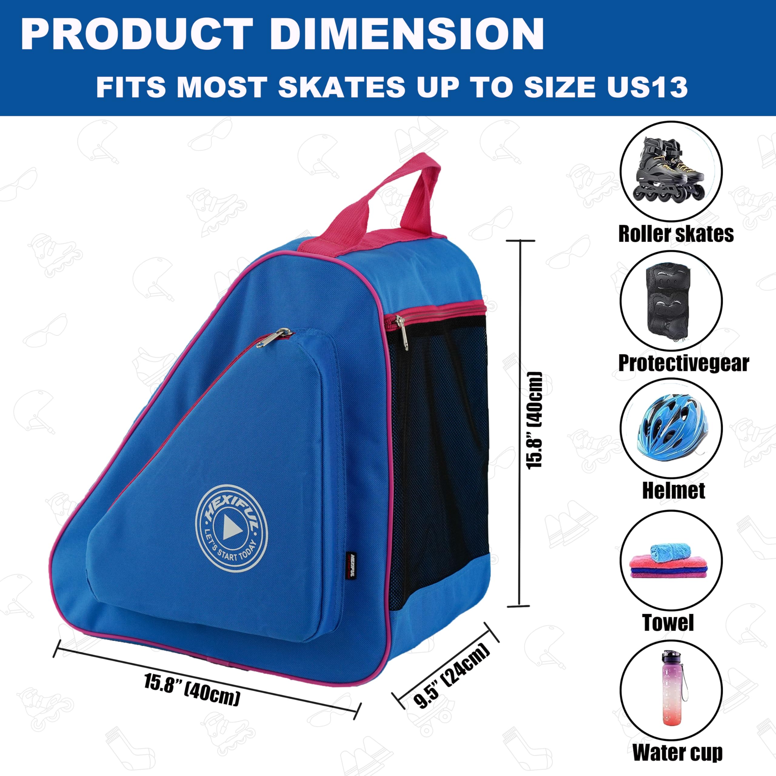 High Capacity—Large main compartment can hold most of skates with helmet at the same time. Large back pocket can hold protected gears, sportswear and drinks etc.