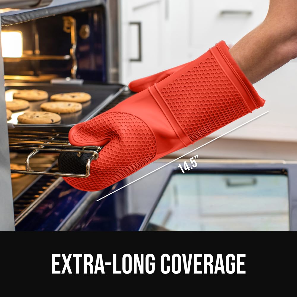 WATERPROOF AND STAIN RESISTANT: no more constantly stained oven mitts; Gorilla Grip Silicone Mitts are both stain resistant and waterproof; spills can easily and instantly be rinsed away under water; hot liquids wonβt soak through and scald your skin as they would with other materials