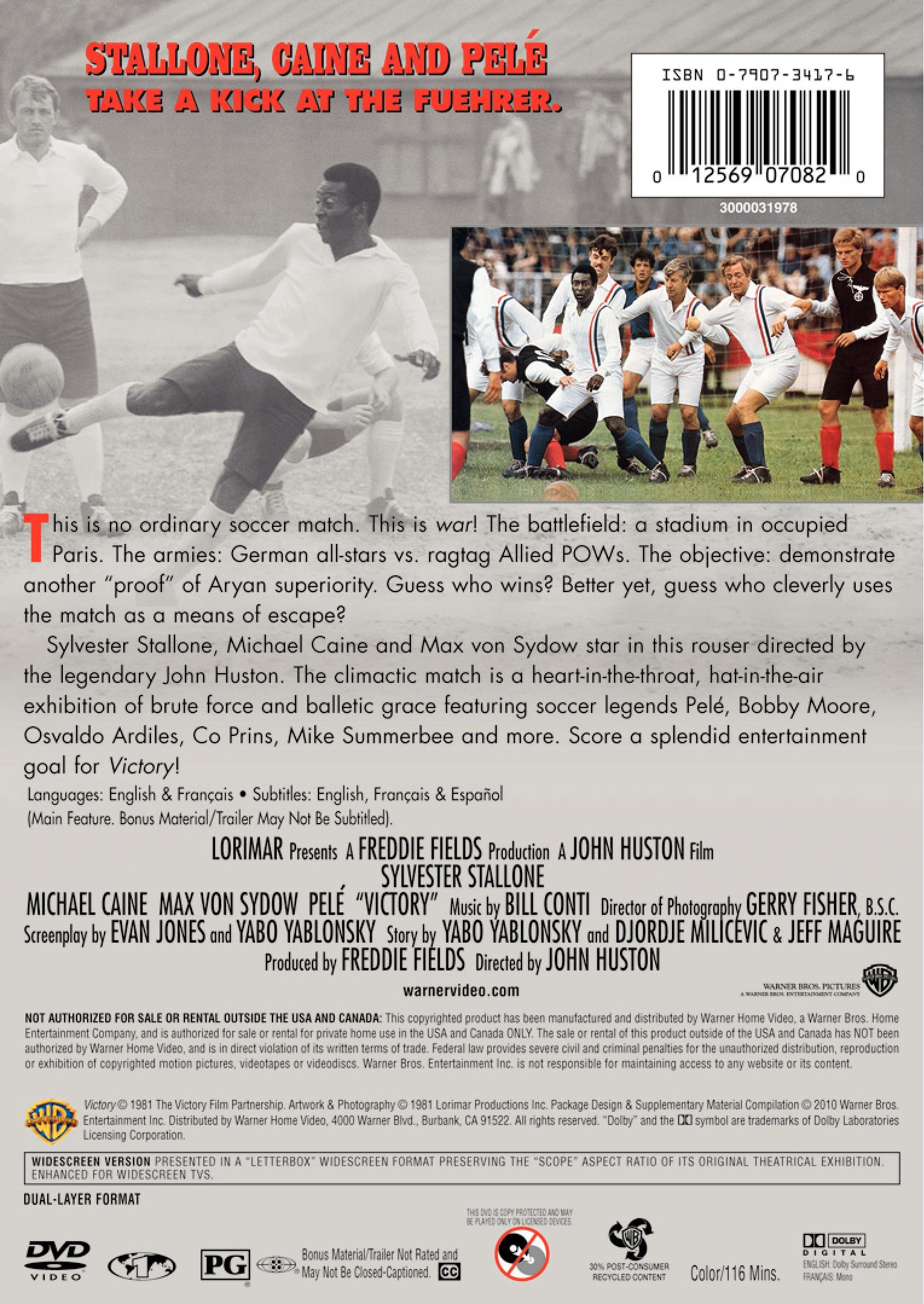Amazon.com Fans of The Great Escape and The Longest Yard will cheer venerable director John Huston's rousing 1981 adventure that pits Allied prisoners of war against their German captors in a soccer match. Michael Caine, who starred in Huston's The Man Who Would Be King, heads an international all-star cast as true-Brit John Colby, a former soccer champion, who heads the rag-tag squad. Max Von Sydow costars as the humane German officer who proposes the match, improbably staged for maximum propaganda impact in a stadium in Paris. As the Allied team, which includes real-life soccer legends Pele and Bobby Moore, practices, the officers' only goal is an audacious half-time escape. Sylvester Stallone is somewhat out of his league as the American determined to join the team. As an actor, Pele may not be on the same playing field as his Oscar-winning costars, but he is thrilling to watch as he executes some awesome, game-winning kicks. --Donald Liebenson Product description In World War II, a group of Nazi officers come up with a propaganda event in which an all star Nazi team will play a team composed of Allied Prisoners of War in a Soccer (Football) game. The Prisoners agree, planning on using the game as a means of escape from the camp.