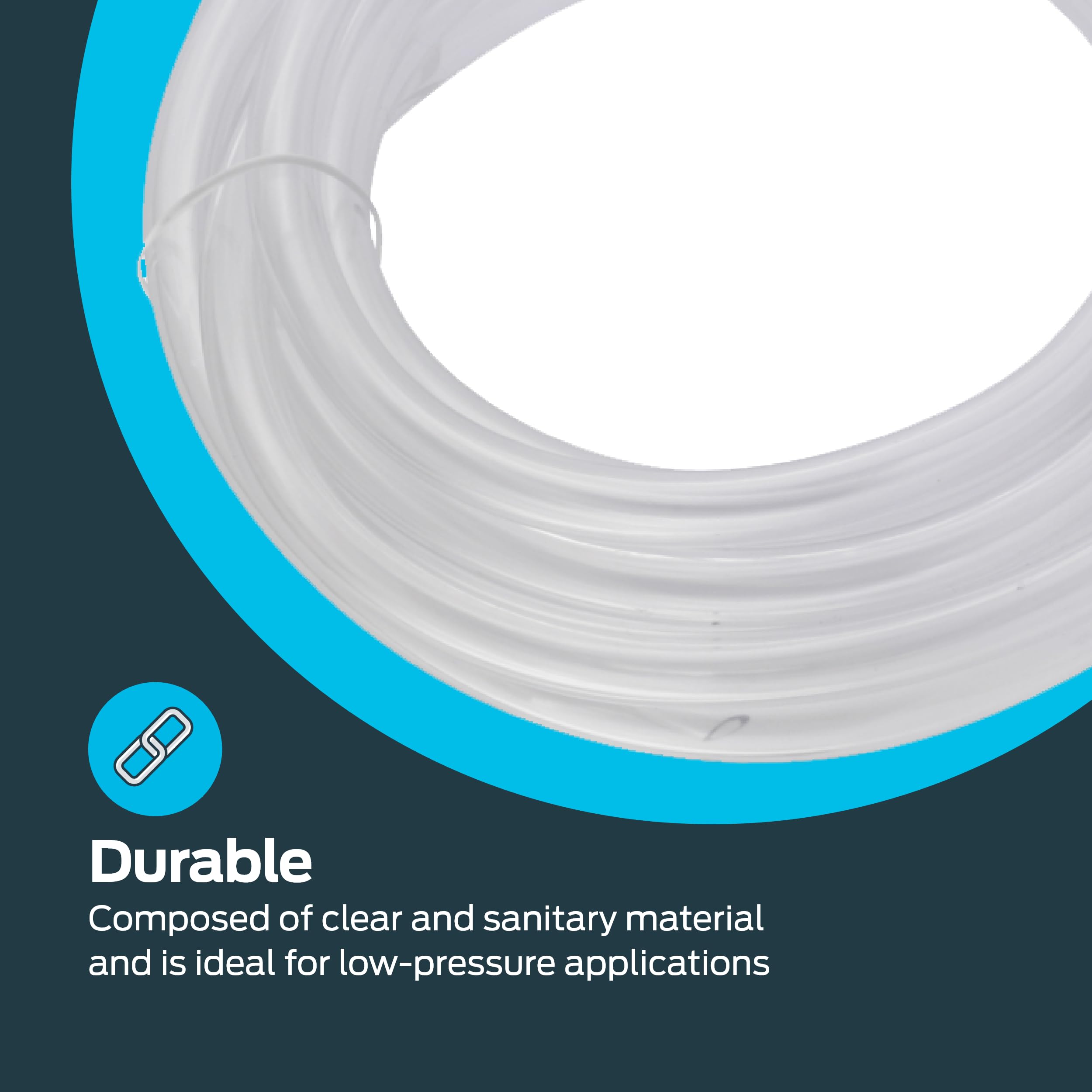 SAFE TO USE: Clear, flexible PVC tubing is made from durable materials that can be safely used in potable water applications