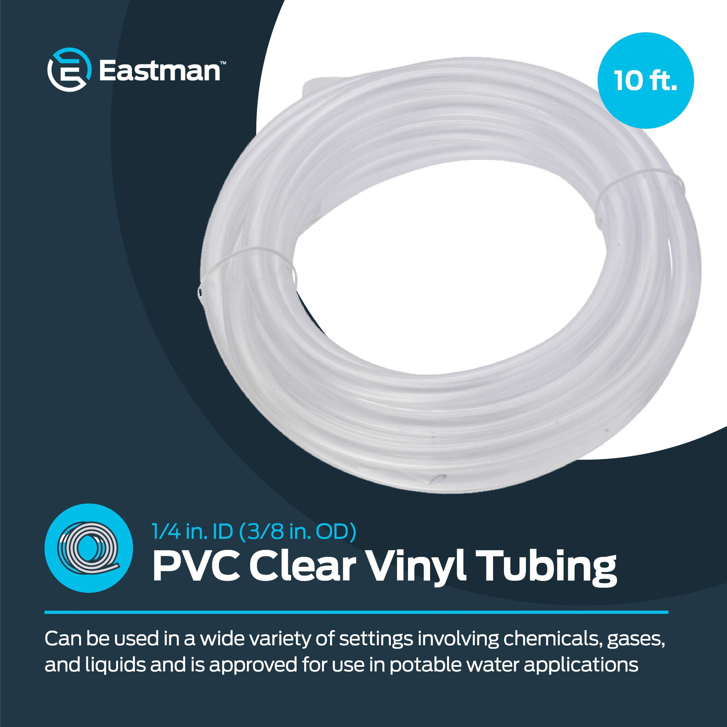 Simplify your plumbing and home improvement projects with the Eastman PVC clear vinyl tubing. Composed of clear, durable PVC, this tubing can be cut to size as needed and is suitable for drainage lines, potable water, beverage dispensing, laboratory use, and aquarium setups. Clear vinyl tubing is a flexible, versatile option that handles chemicals, gases, and liquids in low-pressure applications. Tubing wall thickness is 1/16 inches with a pressure rating of 19 to 55 PSI and a maximum temperature of 170 degrees F. Made with FDA-compliant materials. Not recommended for ice makers.