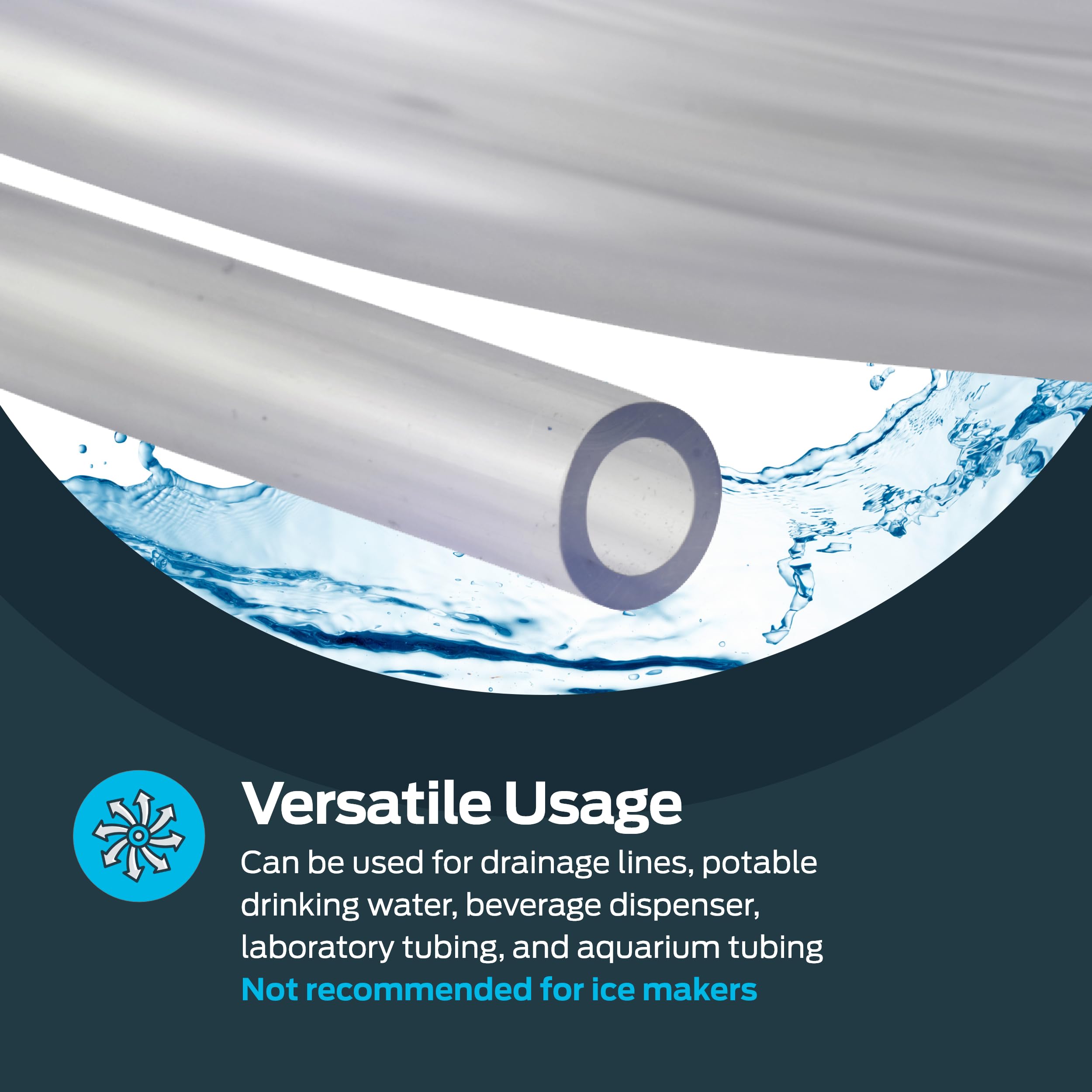 MULTI-PURPOSE USE: Great for drainage lines, potable water, beverage dispensers, aquarium tubing, and lab use; not recommended for ice maker supply
