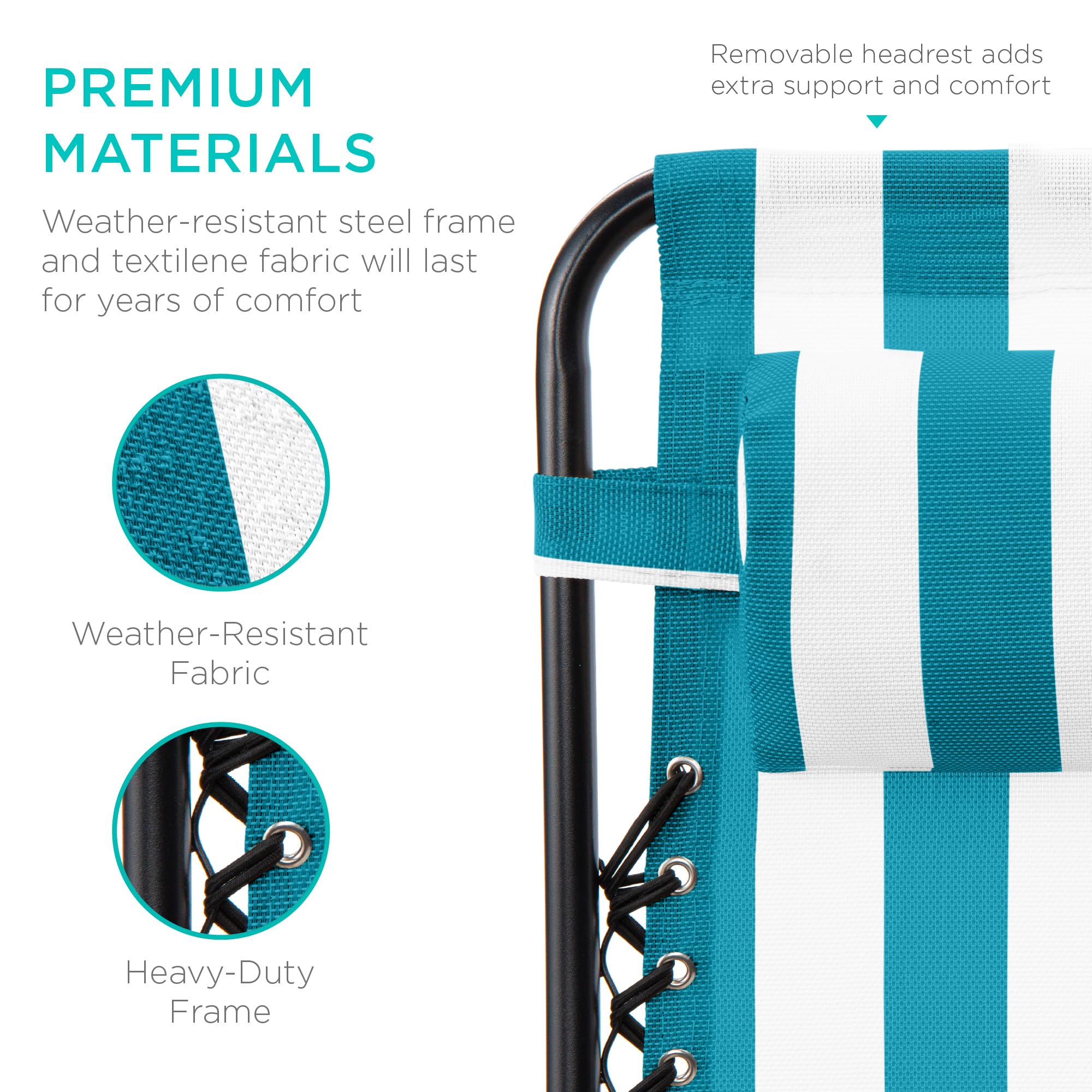 REMOVABLE, ADJUSTABLE HEADRESTS: Includes a removable, padded headrest for an extra element of adjustable comfort; OPEN DIMENSIONS: 32.5"-61"(L) x 25"(W) x 33.5"-44"(H); FOLDED DIMENSIONS: 38"(L) x 25"(W) x 6"(H); WEIGHT CAPACITY: 250 lbs.