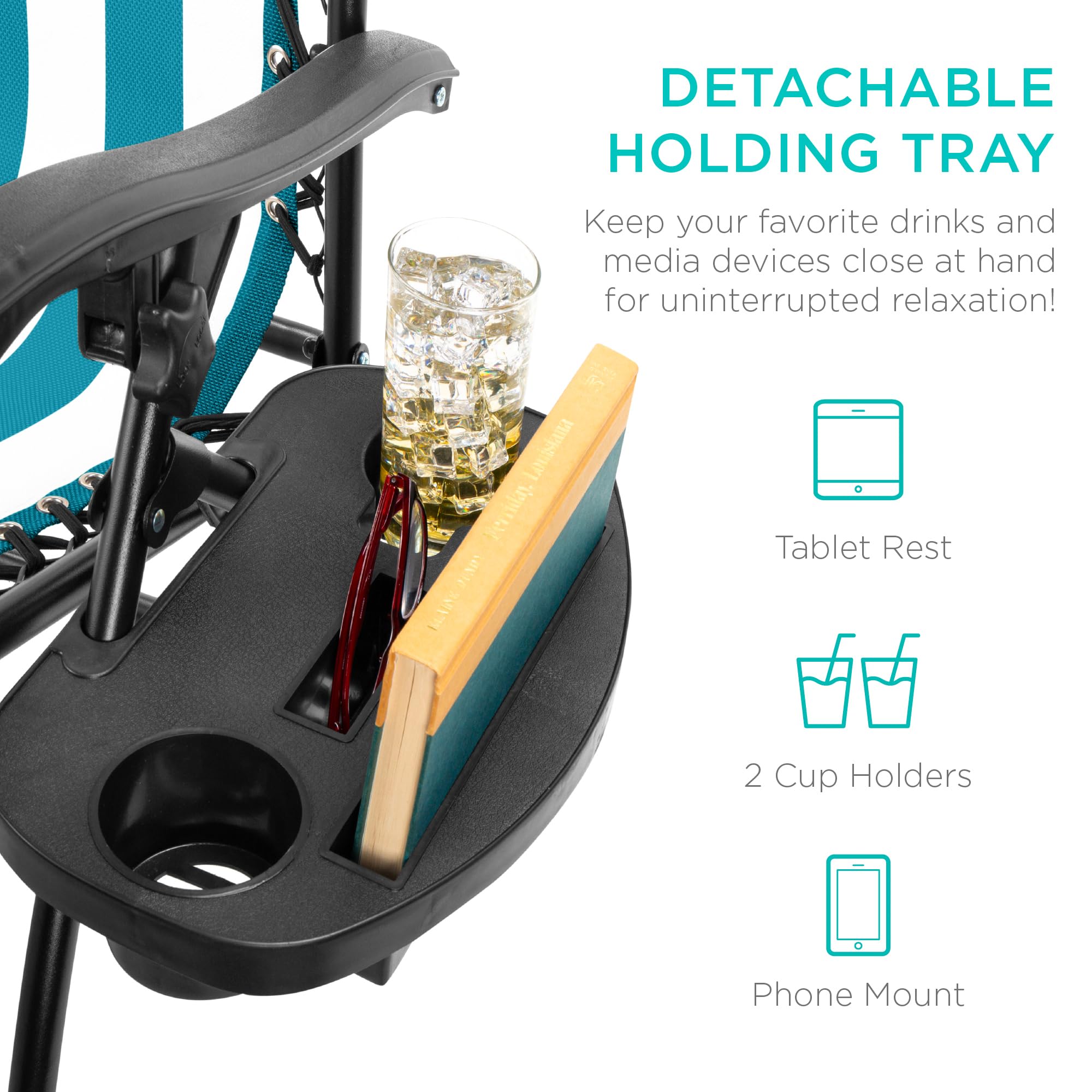 CONVENIENT & DETACHABLE TRAY: Removable tray is built with two cup holders, a phone holder, and a tablet holder so you never have to be far from your favorite drinks or media devices!