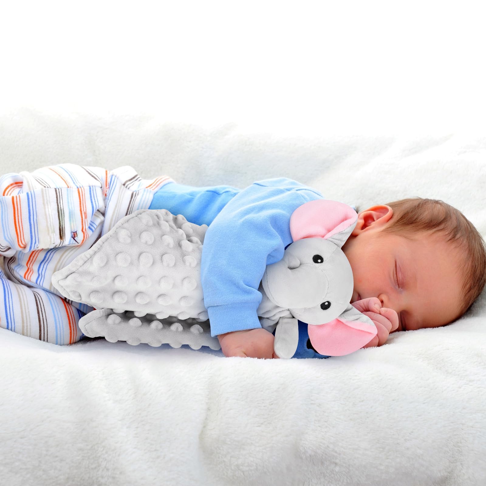 γLovey Blanket Comfortable Fabric γ Elephant plush animals are made of soft and safe polyester fiber material. The soft dot like plush fabric brings more touch to babies, enhances their sense of security, and is a comfortable toy that can be hugged and touched. It is safe for babies, climate friendly, and has no shedding or pilling; Sleep is crucial for the growth and development of infants. No matter where they are, in a crib, stroller, or car seat, comfortable elephant comfort pads can help babies fall asleep quickly or feel safe.