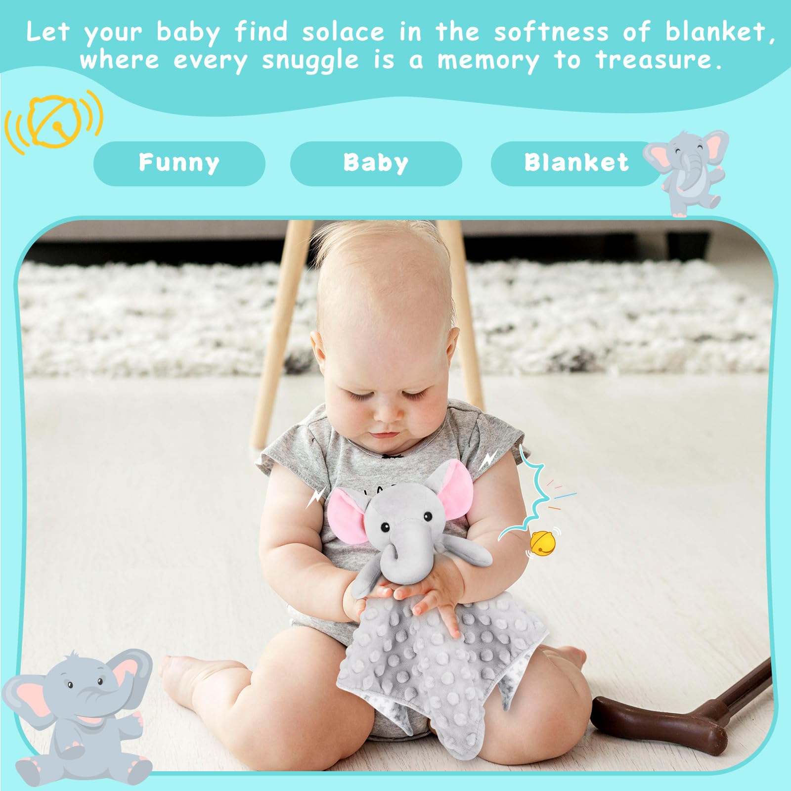 γ Cute Appearance - Elephant Security Blanket γ It is a very cute and soft elephant plush baby blanket with gray colors; The stunning and adorable appearance of the elephant will attract babies, accompany them to explore new things, bring them a lot of fun, and let your baby find comfort in the soft comfort cloth. Every snuggle is a memory worth cherishing.