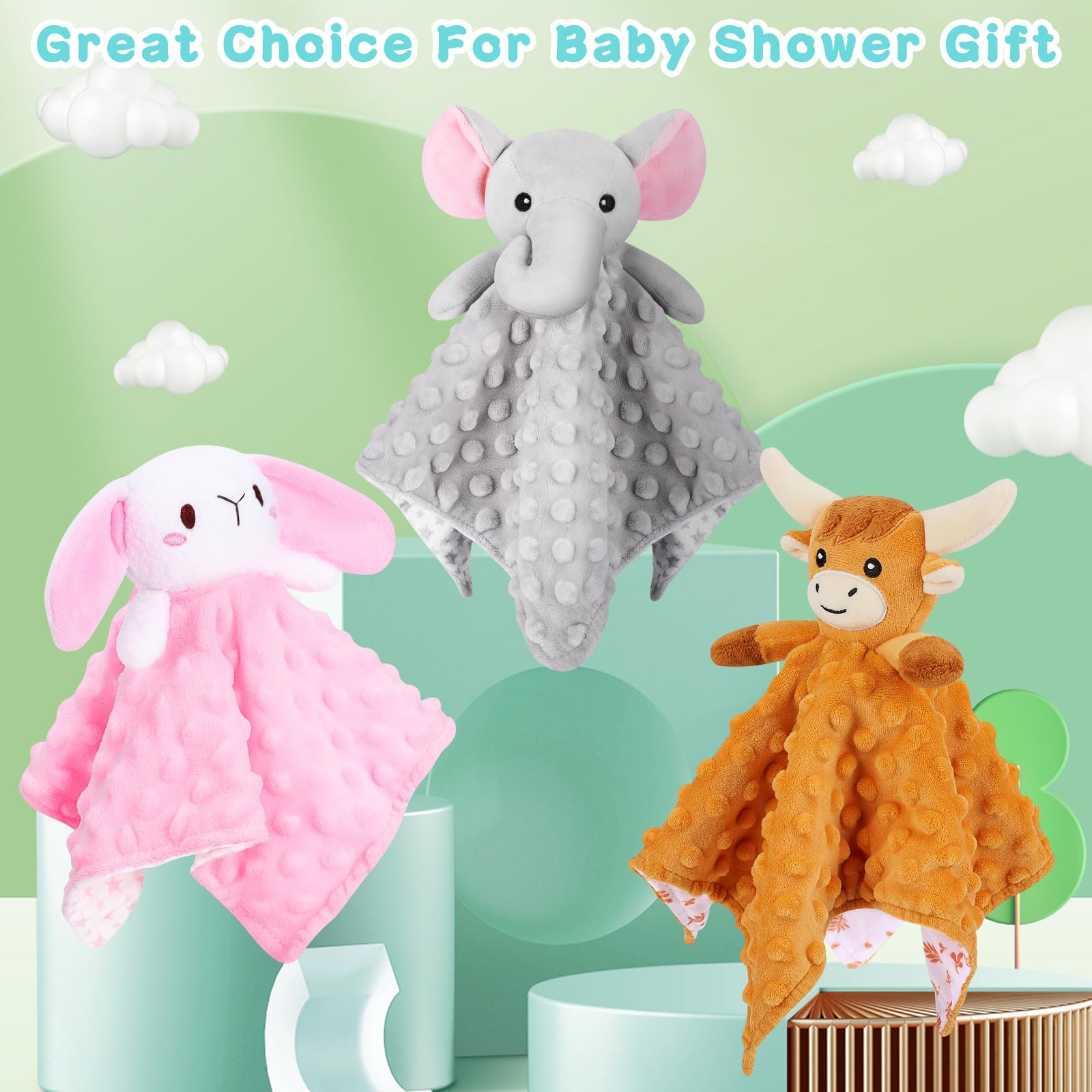 γThe Best Gift-Elephant Snuggle ToyγThe Best Baby Gift is a unique daily baby companion gift prepared for newborns, infants, and toddlers, and is also an excellent choice for baby shower gifts; Handheld elephant comfort cloth is 11.5 inches long, unfolded comfort cloth size 12.4 * 12.4 inches, suitable size, very suitable for babies; Beautiful cardboard packaging, both hygienic and convenient; Great choice for daycare decoration, newborn welcome, and gifts for loved ones, friends, and family.