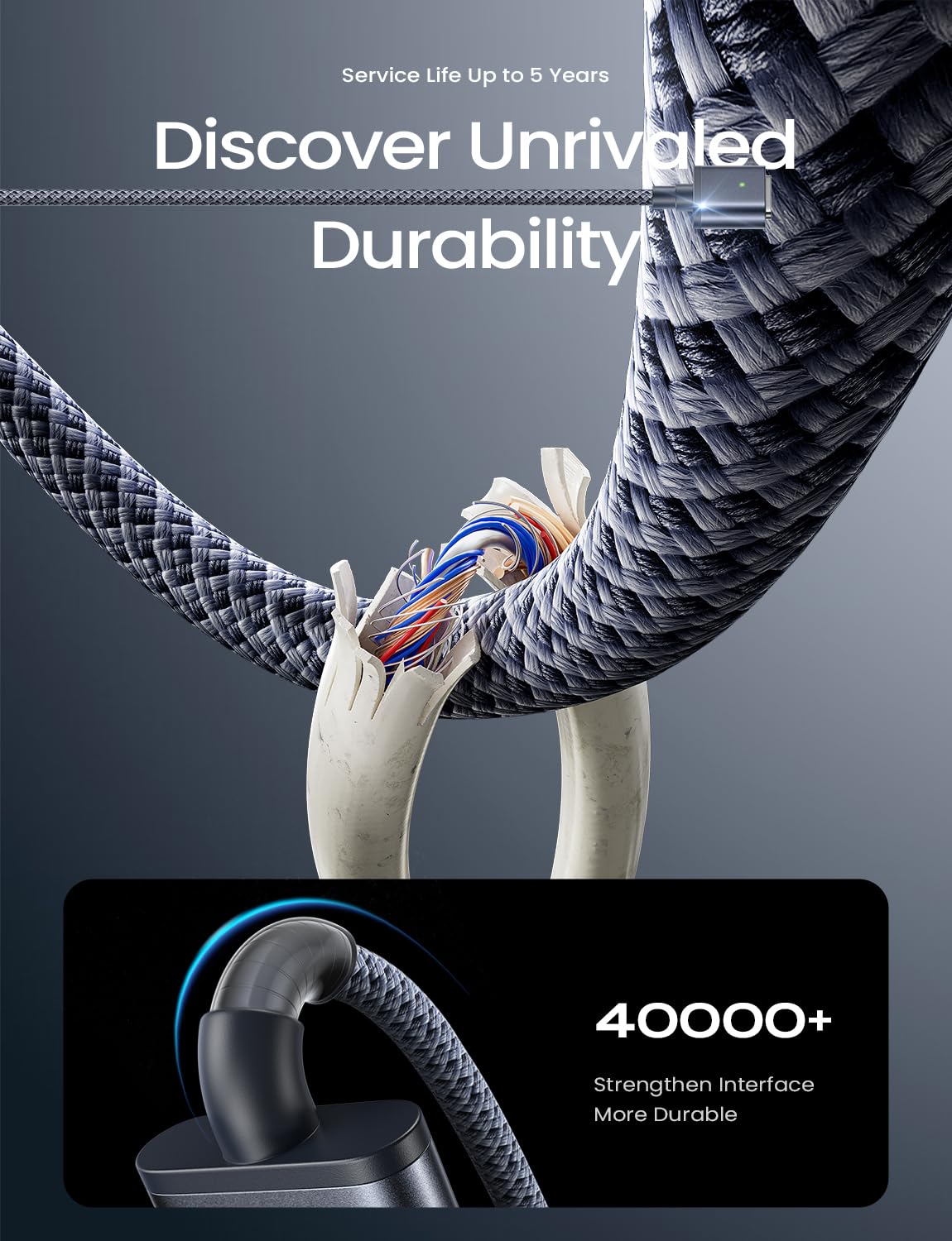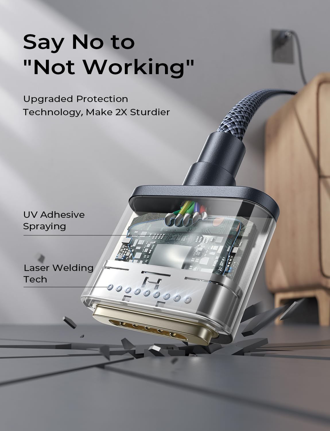3X Long-lasting Protect Design: Constructed with a high-strength braided cover, this Macbook Air charger cable resists wear, bending, and tangling, ensuring lasting durability. Reinforced at the port with laser-welded metal that stays secure. The copper core is UV-glued for solder joint protection, and the magsafe 3 port passes 13KG load testing for long-term resilience