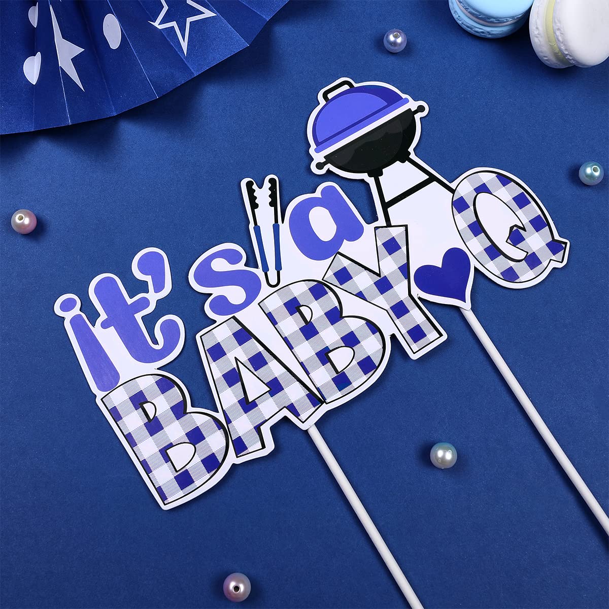 Barbecue Baby Shower Decorations: The It's a Baby Q cake topper is very suitable for decorating your baby shower birthday cake. The color is blue, which is perfect for baby boys’ baby shower!!