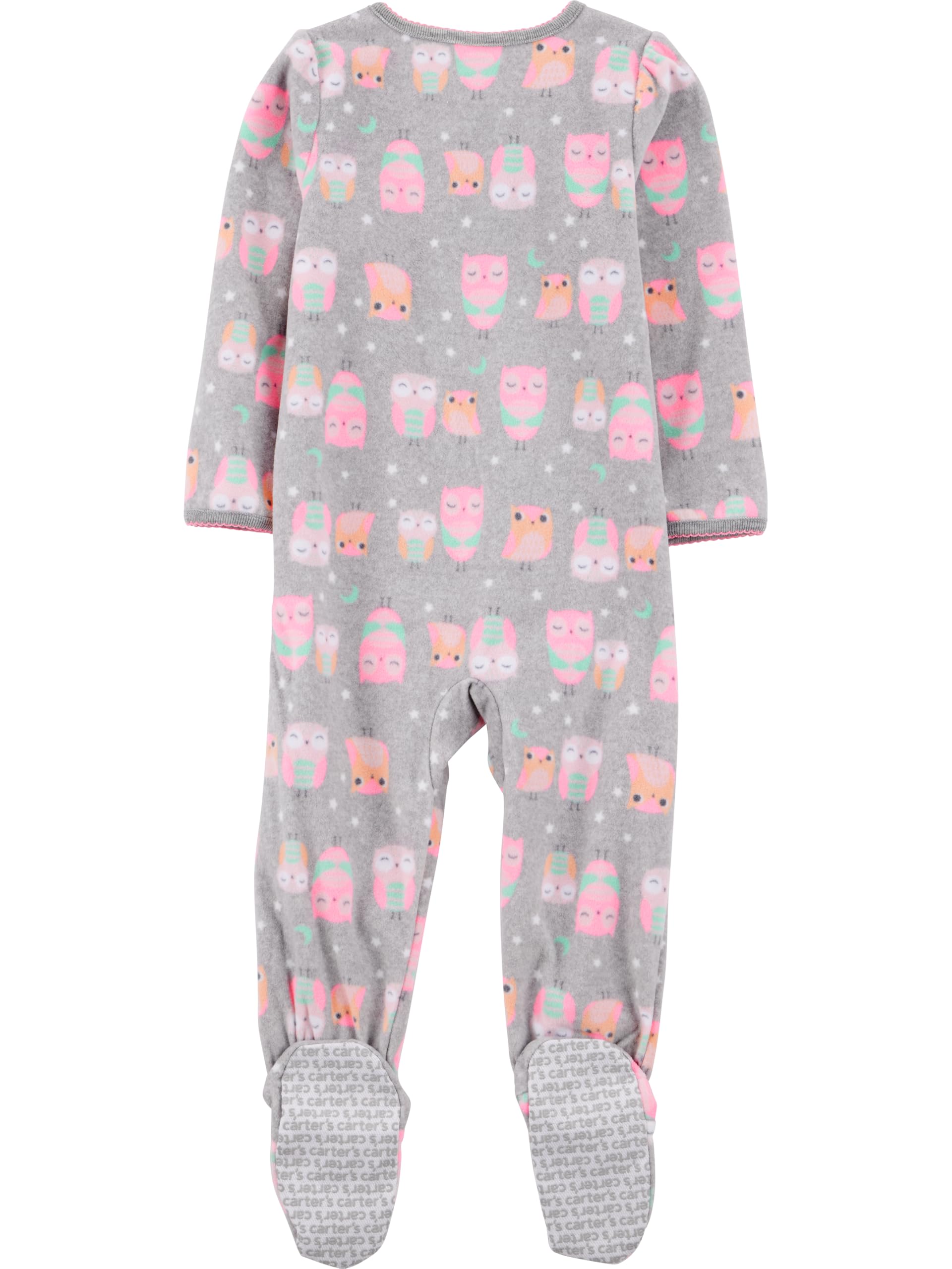 Description A three-pack of colorful long-sleeve footed pajamas featuring playful prints and ankle-to-chin zippers for easy changes.