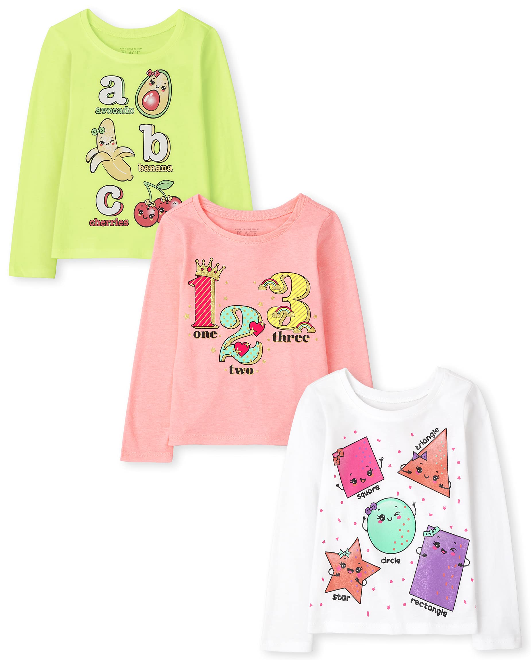 Stock-up on her everyday essentials with this pack of 3 toddler girls graphic tees from The Children's Place