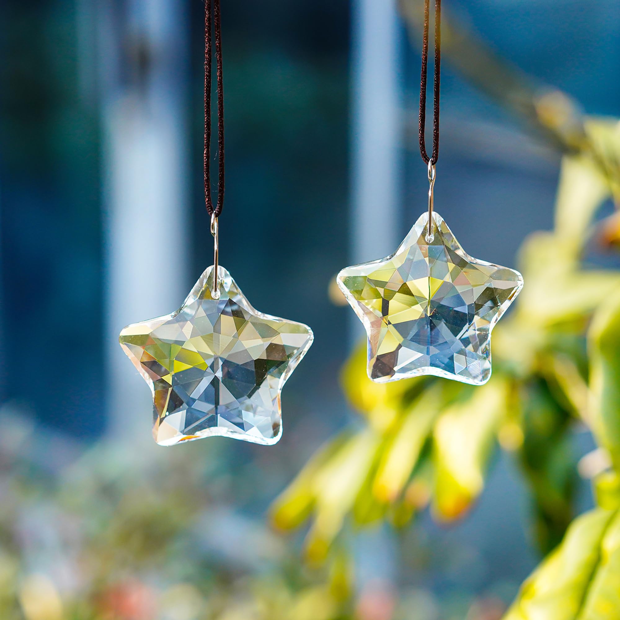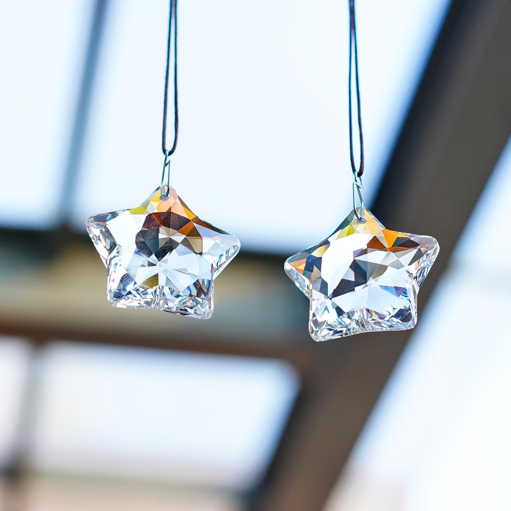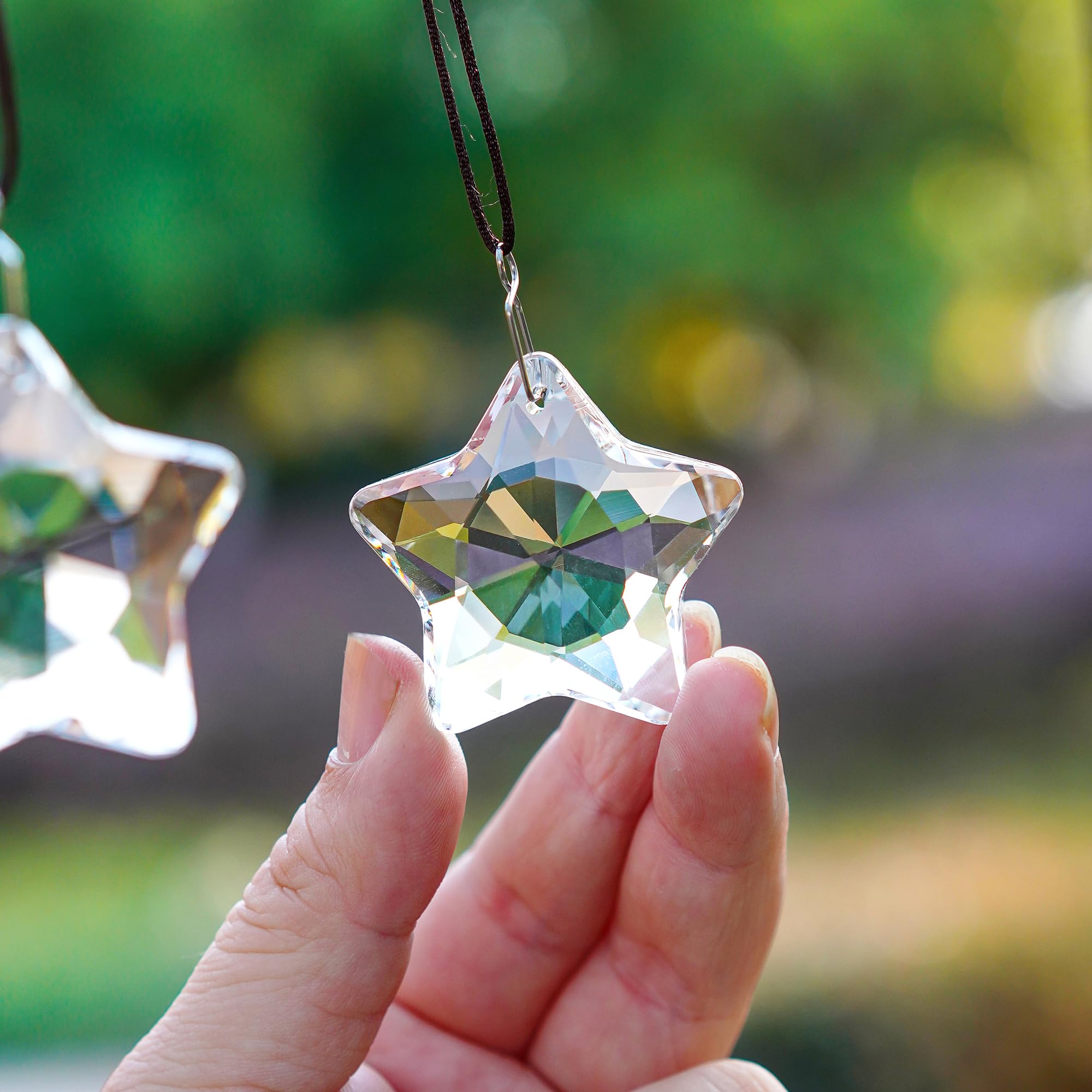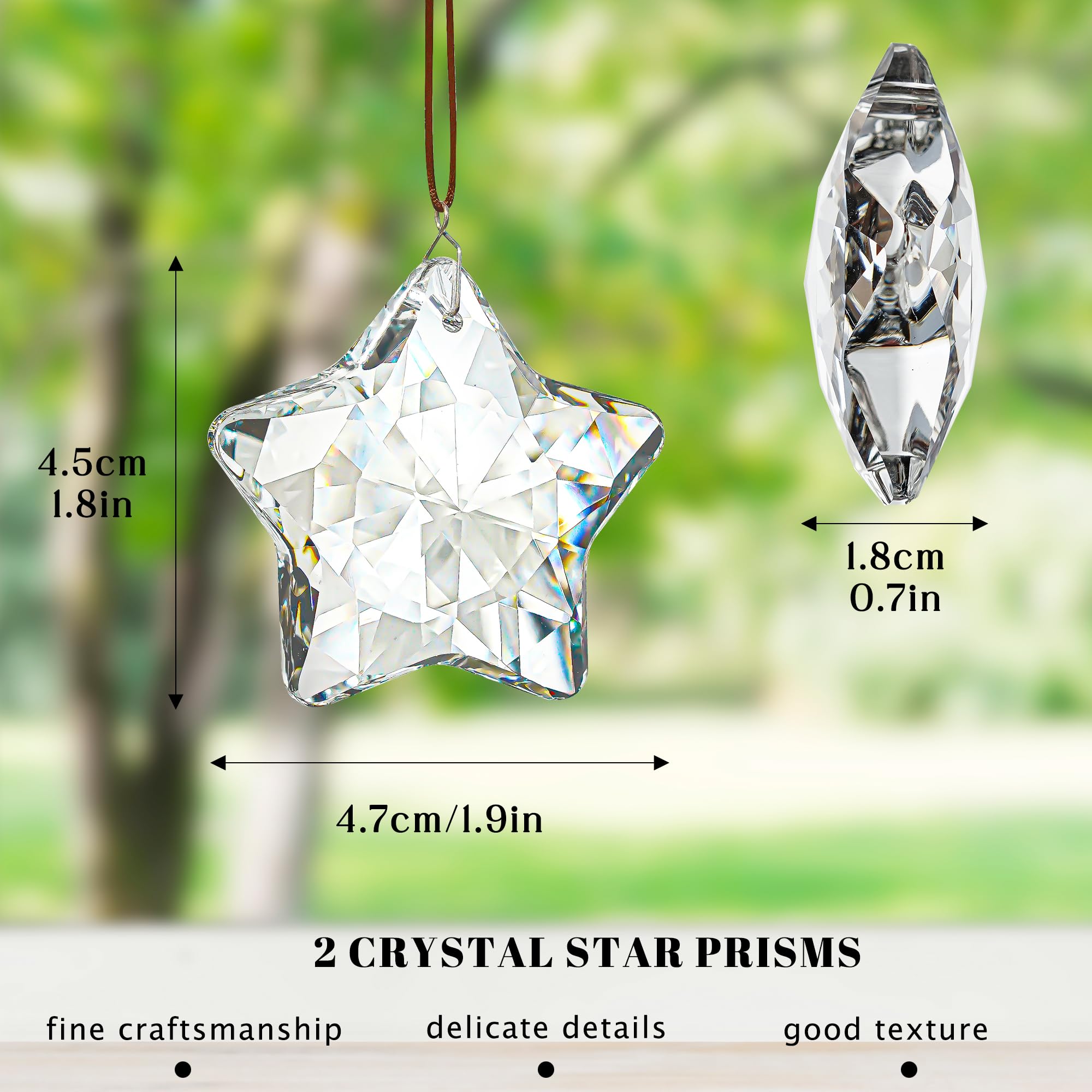 Premium Quality & Size: This set includes 2 crystal star prisms, each measuring 1.8 inches (NW: 75g). Crafted from premium K9 glass, these crystal prisms are free from bubbles and scratches, ensuring a brilliant, long-lasting shine. They are not made of plastic, offering superior durability and clarity