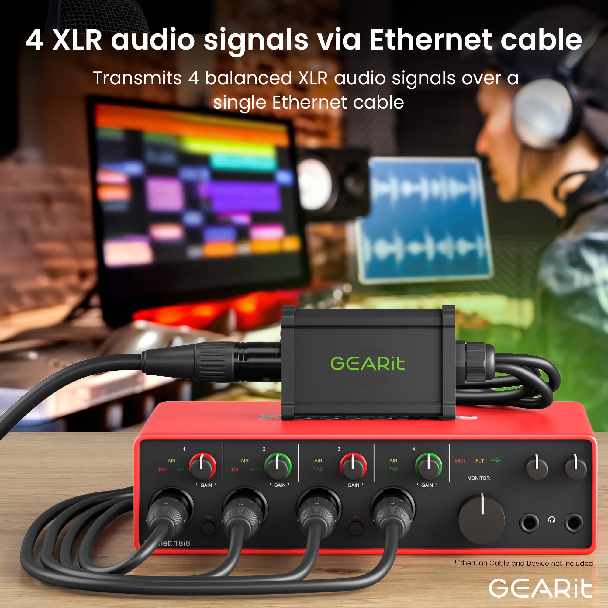 4 Channels of Analog Audio, One Cable - Used together, these two adapters carry 4 analog XLR audio signals over one RJ45 cable. Connect audio from mixers, microphones and instruments to the XLR breakout cables, and run all 4 signals to the other adapter via shielded, balanced Ethernet cable (sold separately).