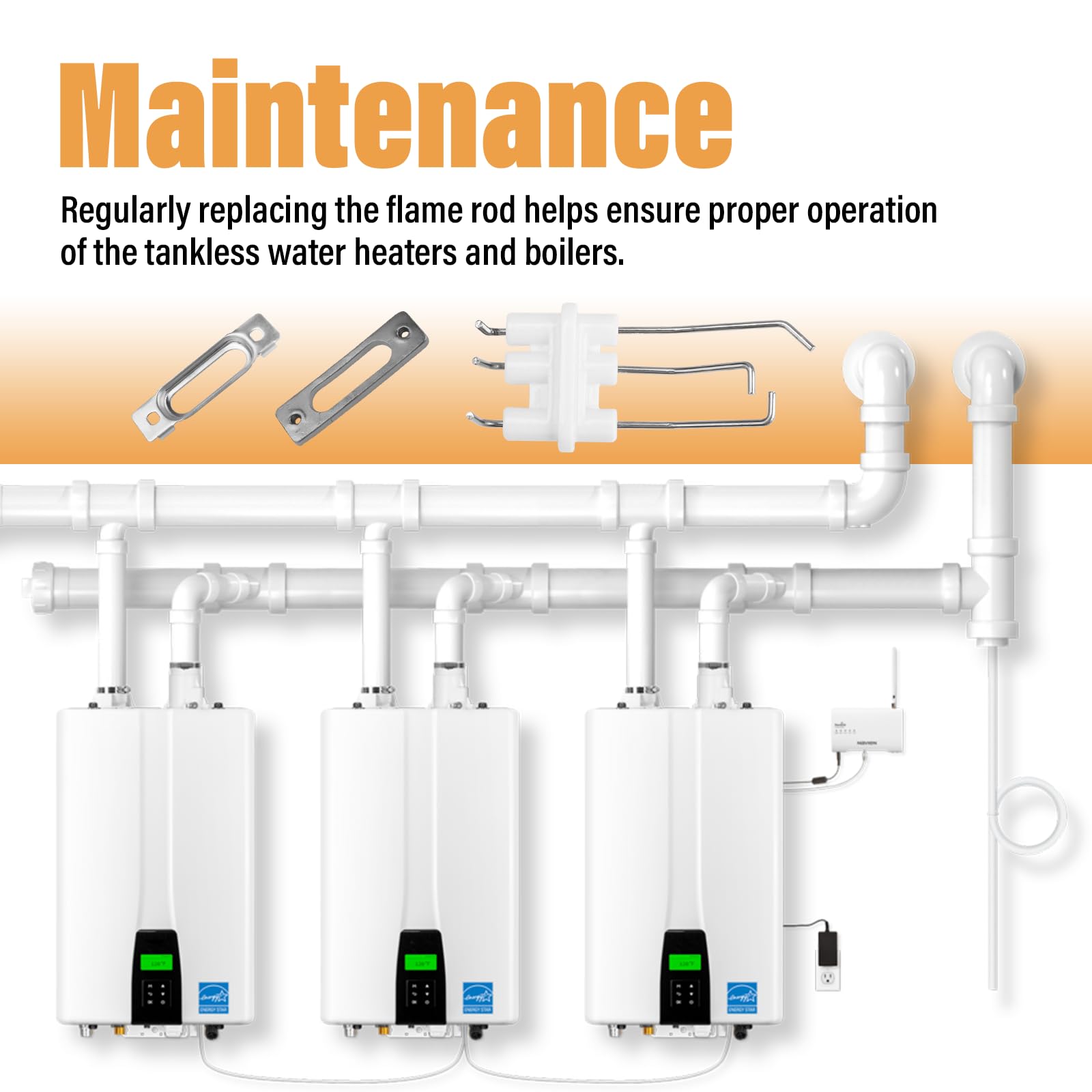 【Maintenance】Over time, tankless water heater flame rod can accumulate soot or debris, affecting their ability to detect flames accurately. Regular maintenance, including cleaning or replacement if necessary, helps ensure proper operation.