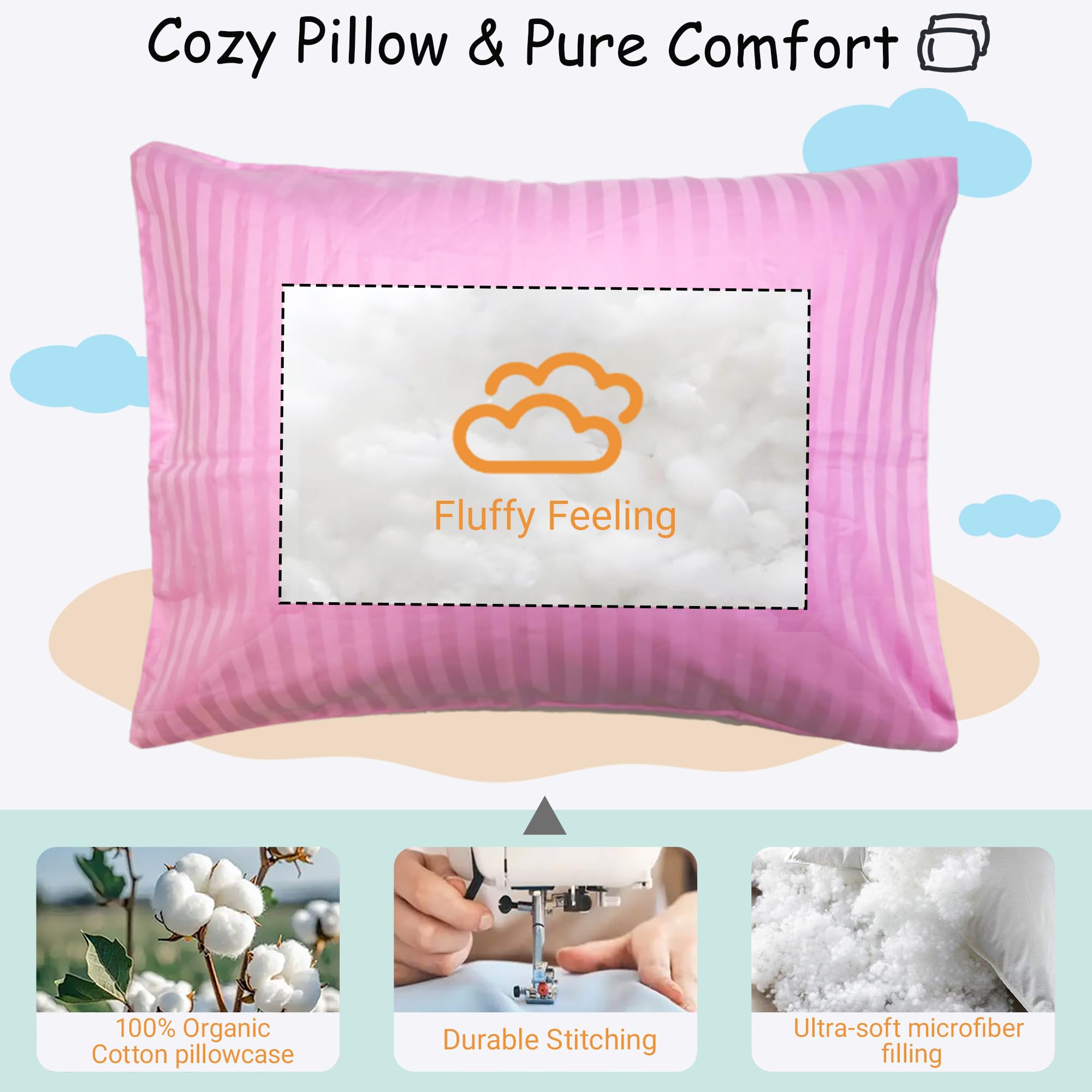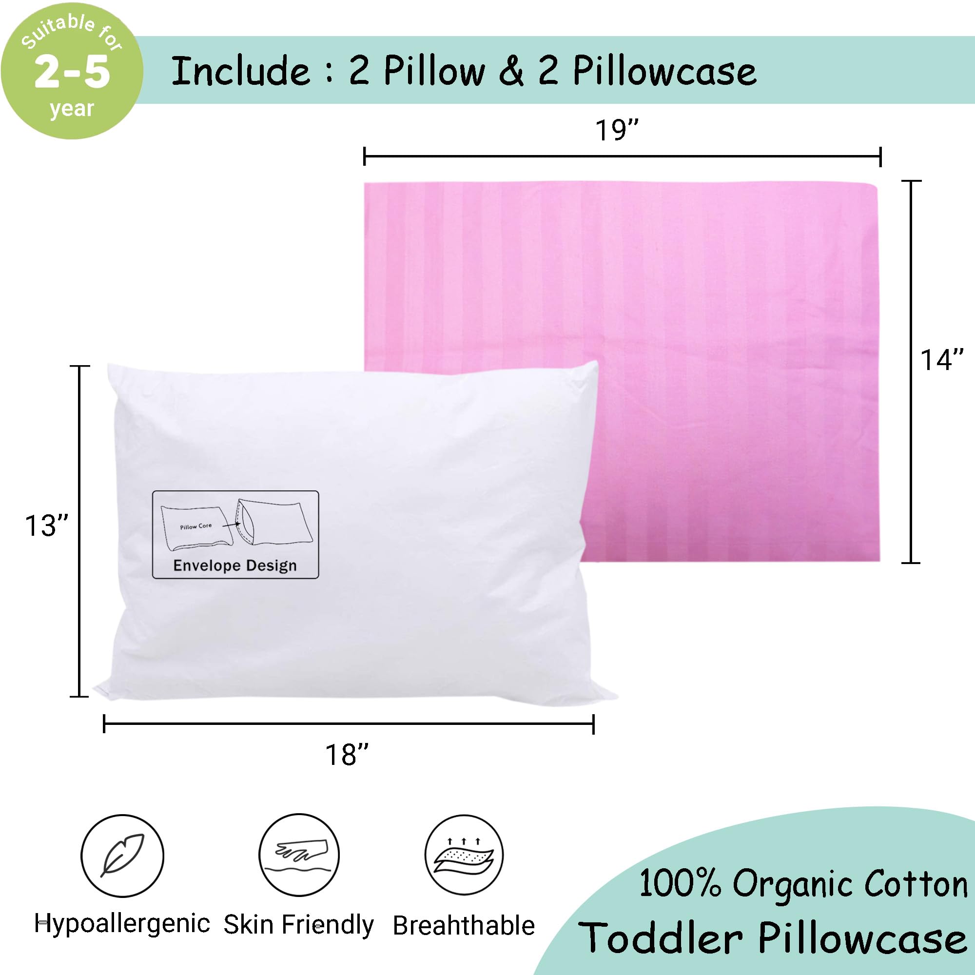 PACKAGE INCLUDE: 2 toddler pillow 13x18 and 2 toddler pillowcase 14x19, After opening the package, please wash and dry the pillow to regain its fluffiness