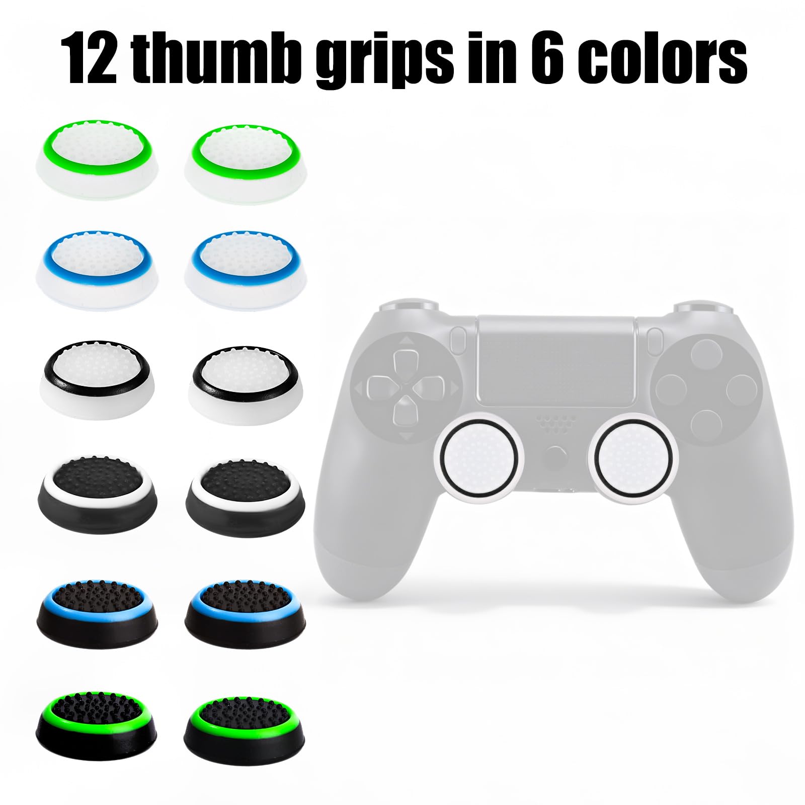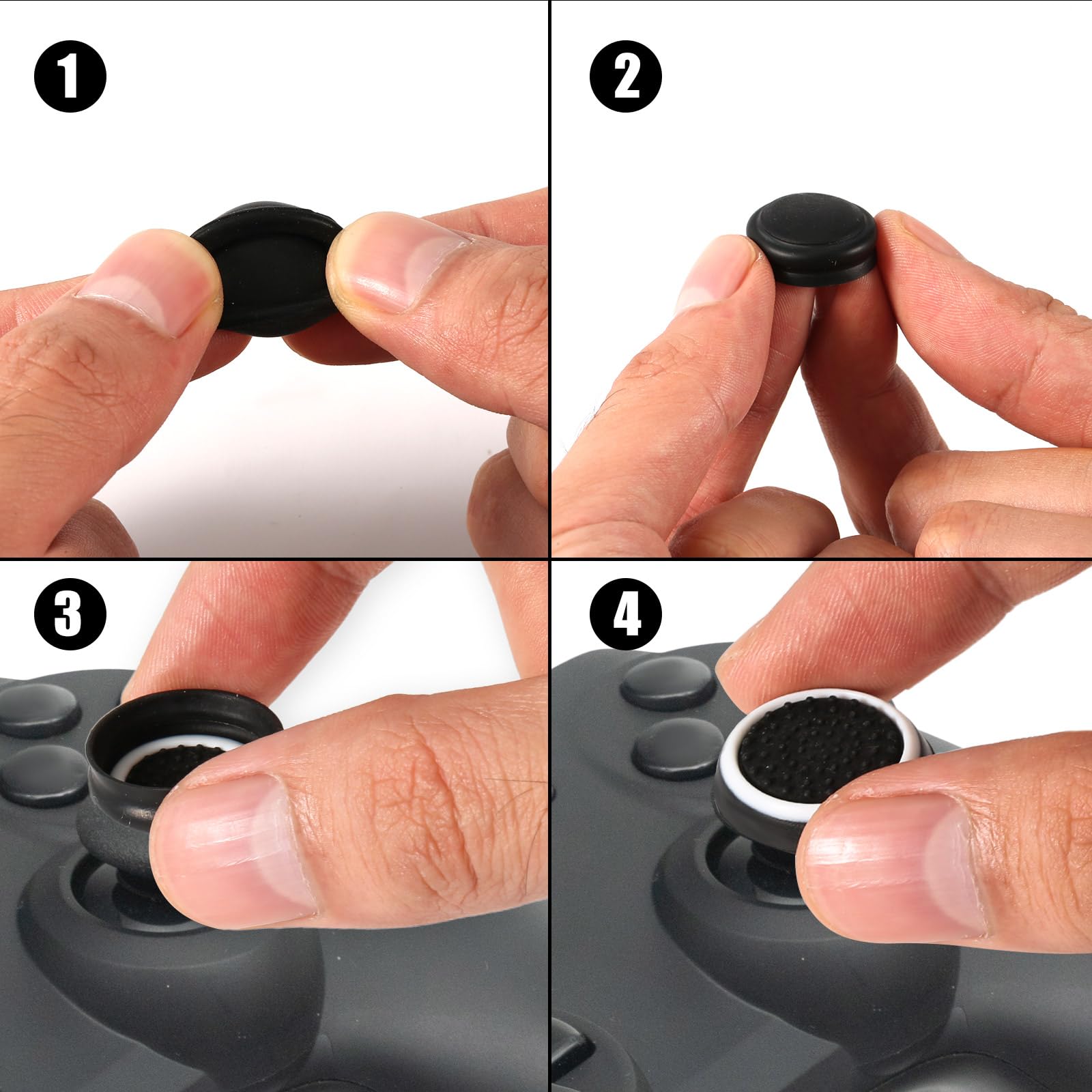 Compatibility: The thumb grips are perfectly compatible with PS5, PS4, Xbox Series X/S, Xbox One and Switch Pro game console controllers. Please note that our product is not sponsored or endorsed by, or affiliated with the brands it fits, including PS5, PS4, Xbox Series X/S, Xbox One and Switch Pro.