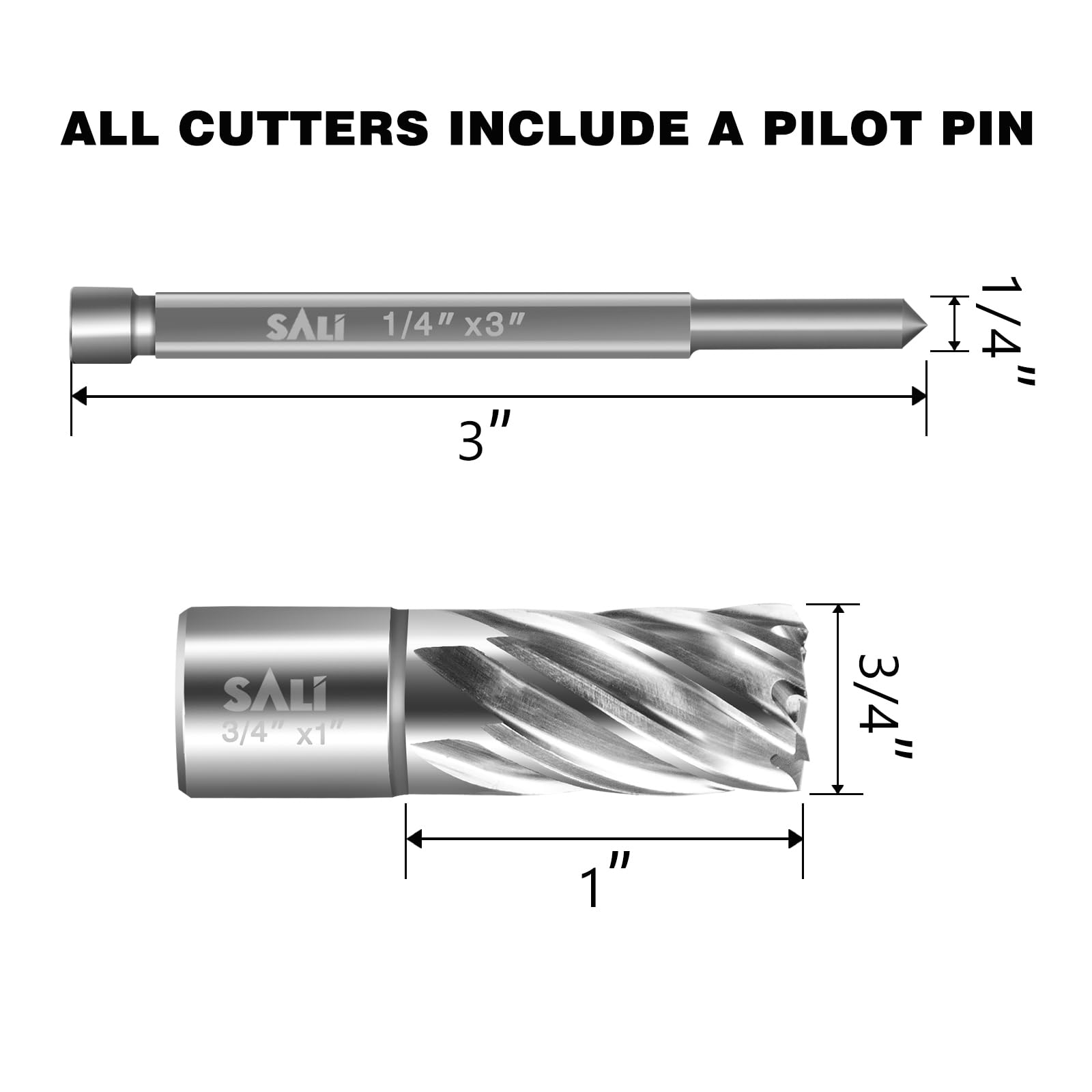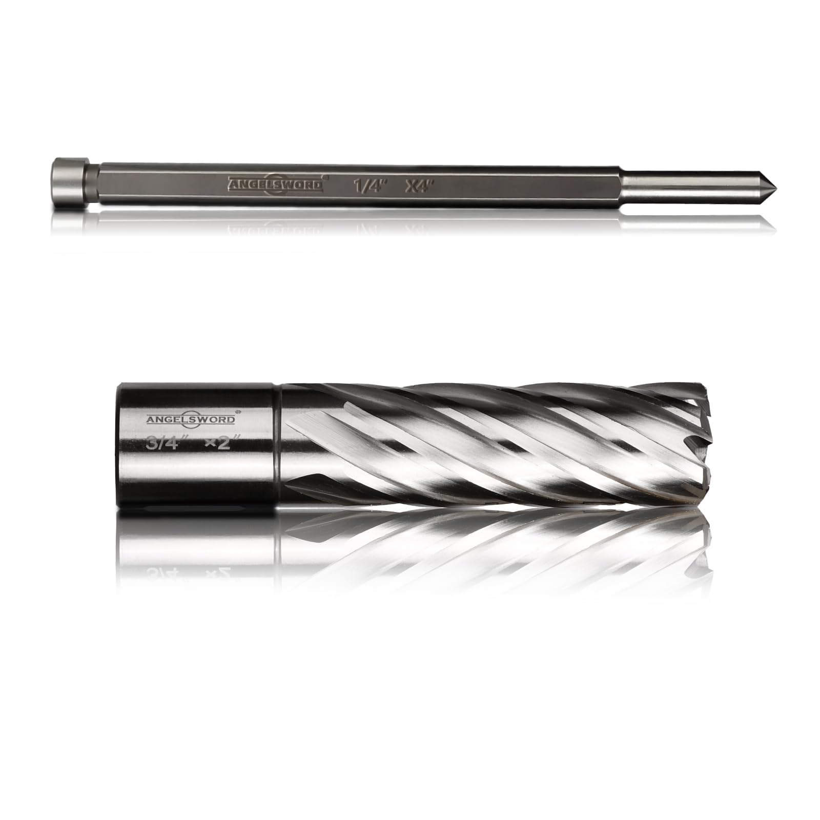 Cnc-machined high precision annular drill bit set with 3/4 inch weldon shank (with 2 flats) for secure clamping and edge finish designed for smooth, reamed, burr-free edges of drilled holes. Use a firm steady pressure throughout the cut for better results