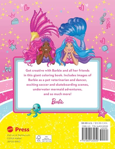 It's a Barbie world and this coloring books has it all--including careers, sports, fashion, mermaids, and more! Get creative with Malibu Barbie, Brooklyn Barbie, and all their friends in this OFFICIAL 192-page giant coloring book! Over 350 fun pictures to color! Includes images of Barbie as a pet veterinarian and dancer, exciting soccer and skateboarding scenes, underwater mermaid adventures, and so much more!