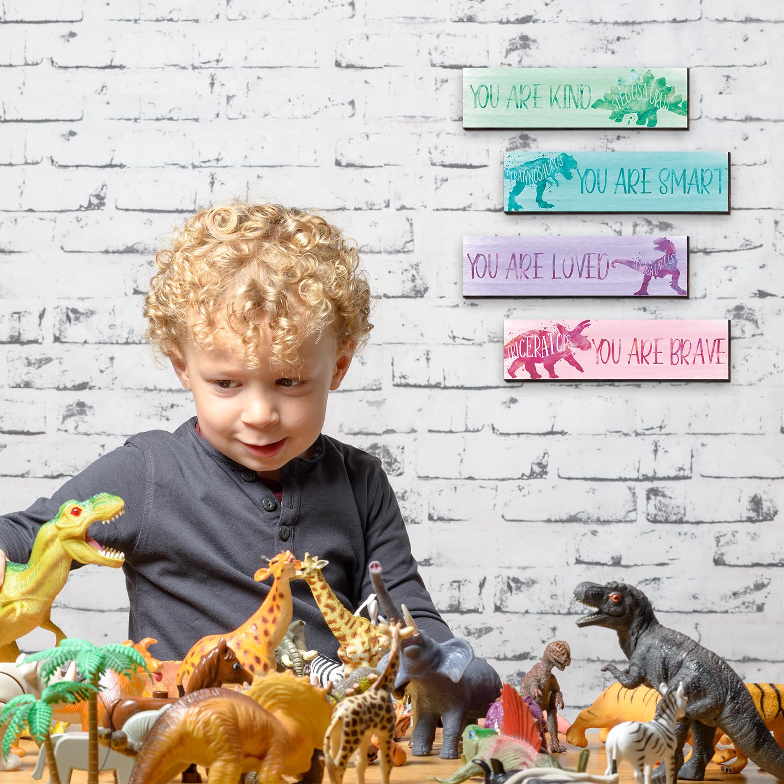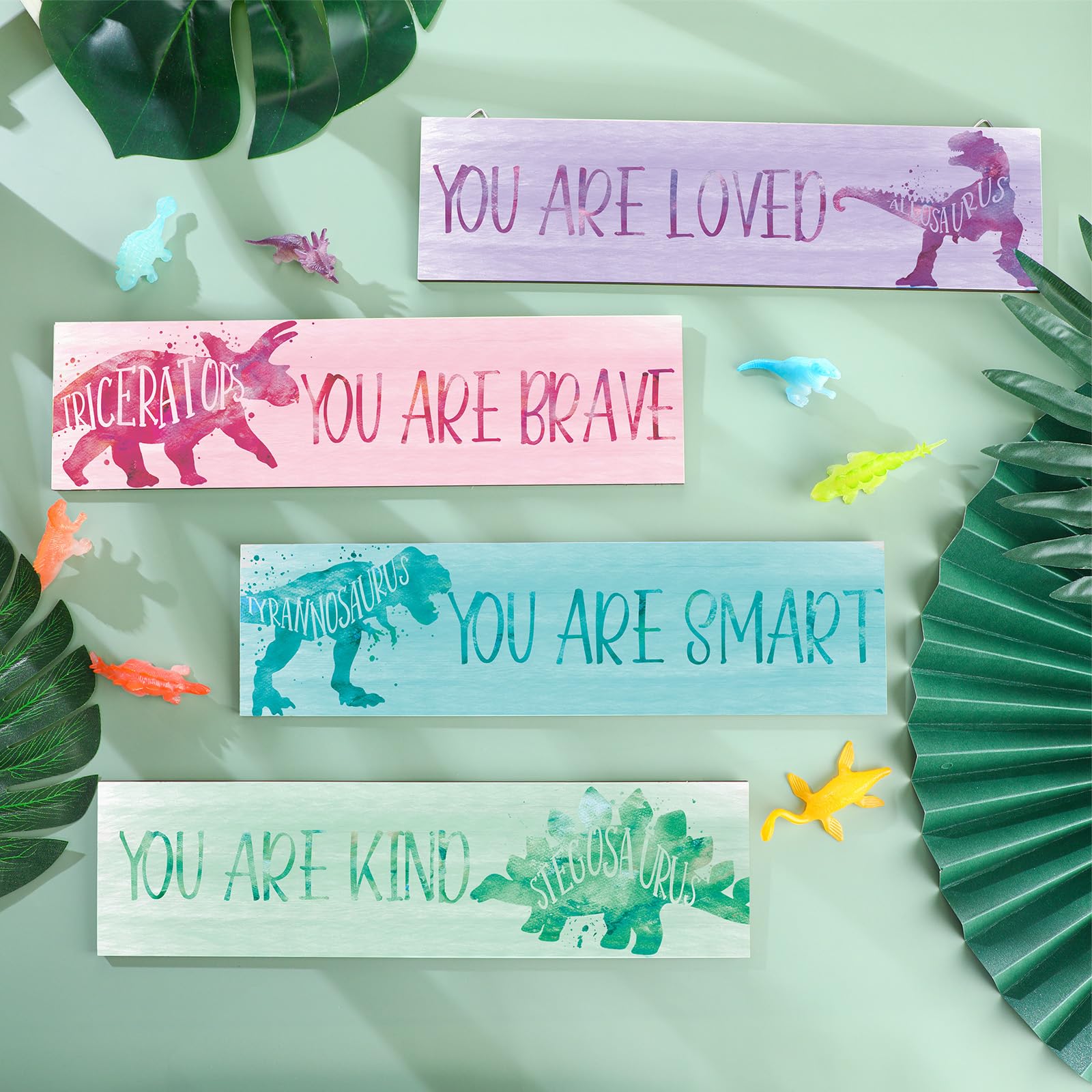 Inspiring Words Design: each decor measures approx. 12 x 3 x 0.2 inches/ 30 x 8 x 0.5 cm; And this dinosaur decor comes with different inspiring words, which can encourage you or your kids when you feel down, bringing you positive attitudes towards life, making your child life colorful