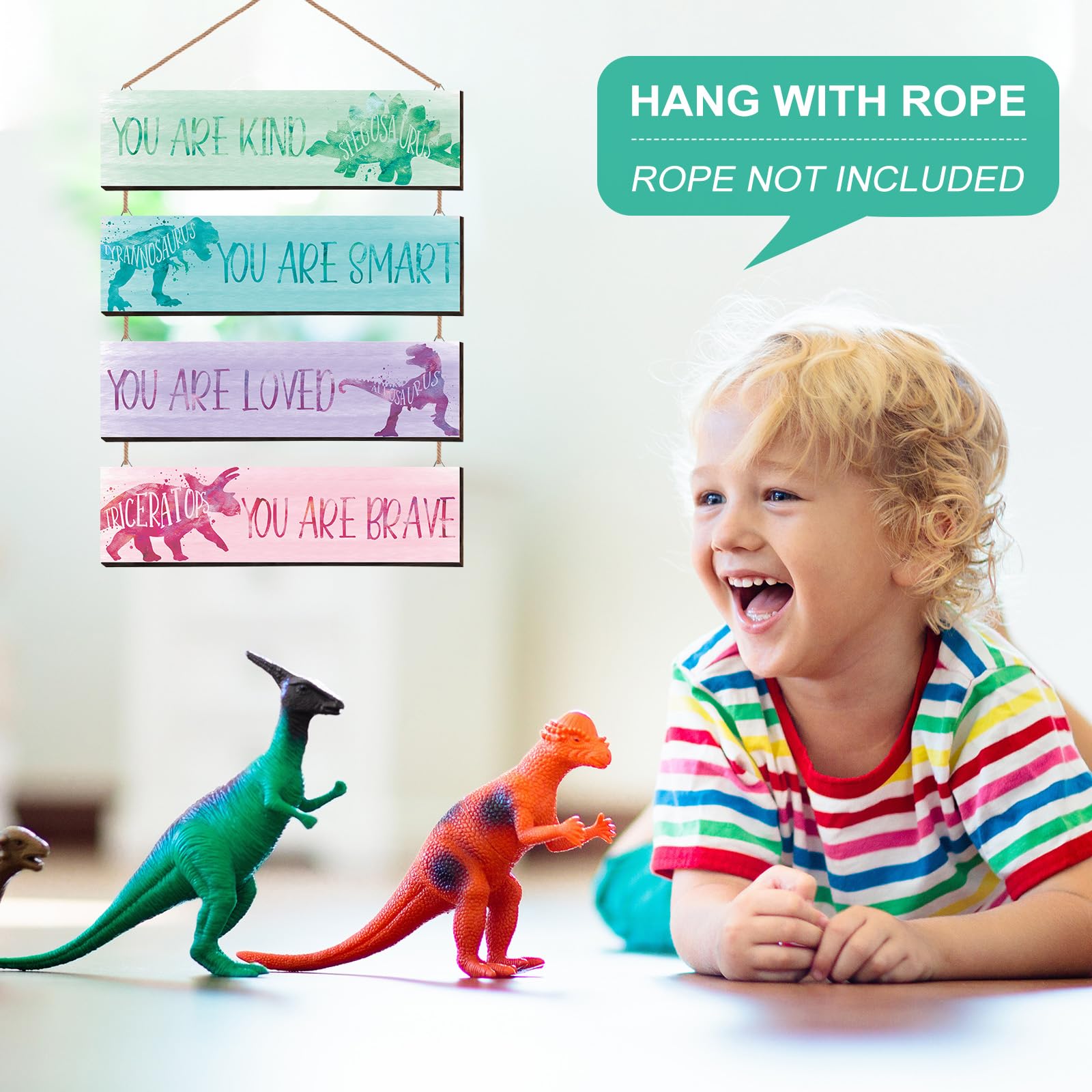 Add Luster to Your Home: these dinosaur wall art hanging boards are suitable for different indoor decoration themes, ideal for decorating bedrooms, restaurants, classroom, nursery room, living room, offices and so on; These decorative hanging boards come with hanging hooks on the back, you can use nails or ropes to install them, which will not take up much time and energy