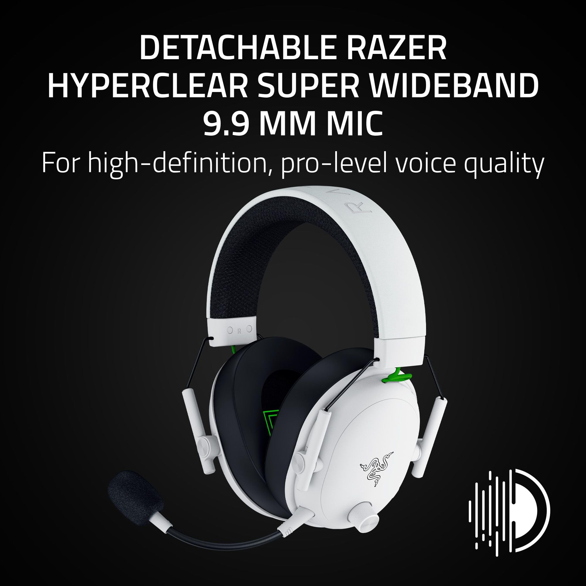 DETACHABLE HYPERCLEAR SUPER WIDEBAND 9.9MM MIC — By covering a wider frequency range of sound, this detachable mic captures an incredible amount of voice detail so that every shotcall sounds clear, rich, and natural