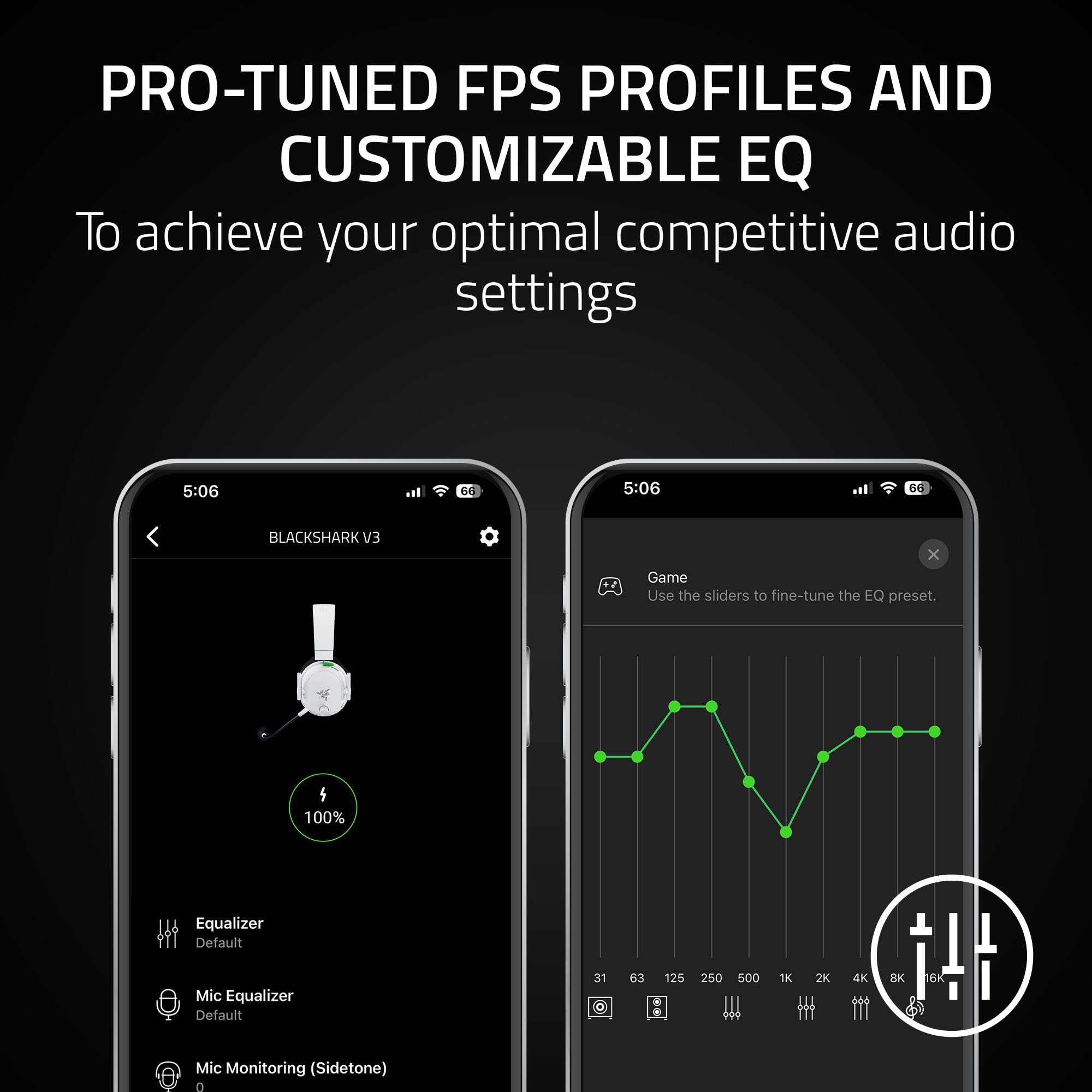PRO-TUNED FPS PROFILES AND CUSTOMIZABLE EQ — Unlock an audio advantage with game-specific EQ profiles, precision-tuned with Razer's roster of esports champions; create custom EQs, save it to the headset, and be ready to compete anytime
