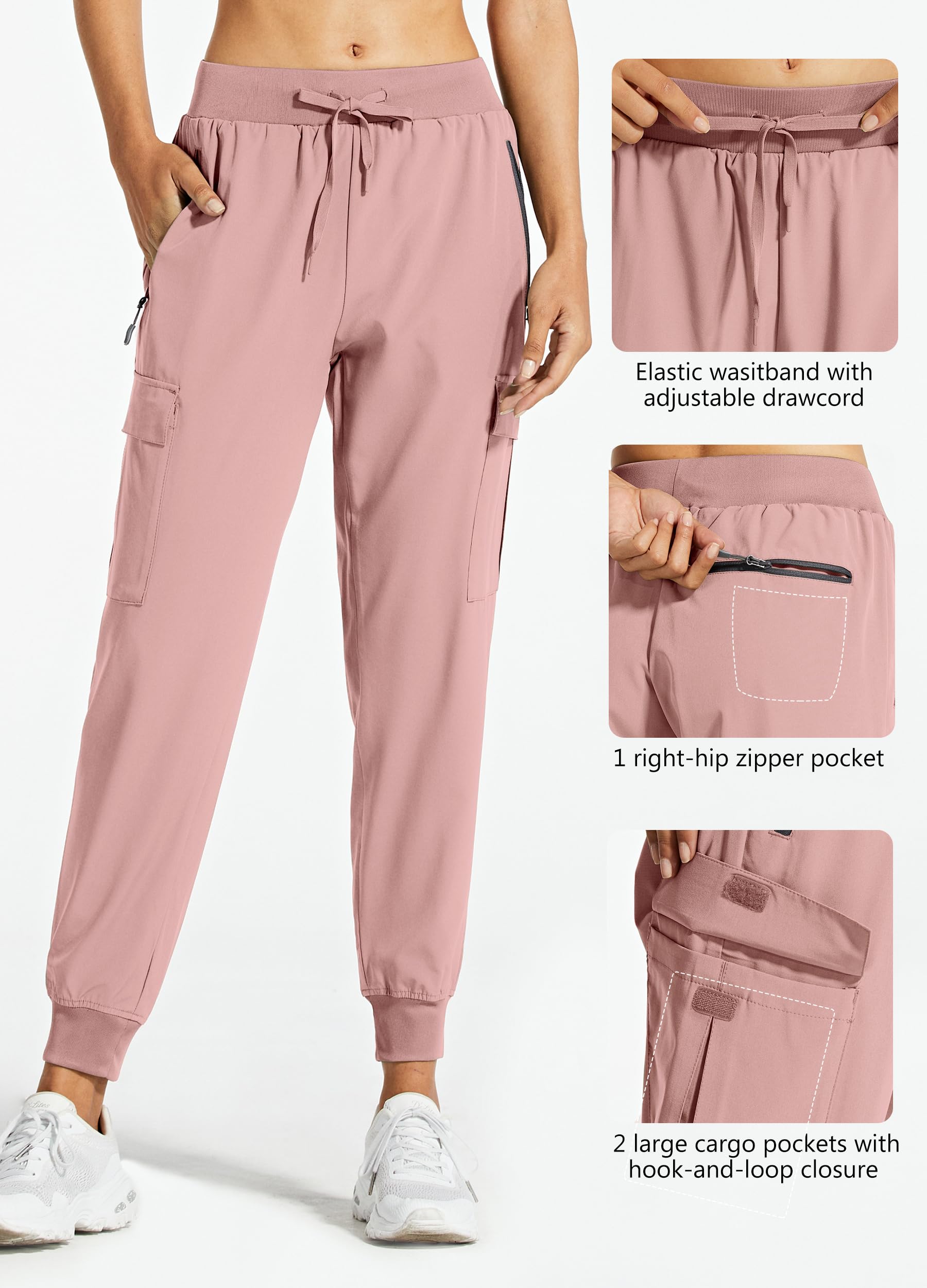 5 functional pockets including 2 side zip pockets, 2 cargo pockets with hook-and-loop closure and 1 back zip pocket, enough to stash your essentials, such as keys, cards and more, free your hands while hiking or traveling