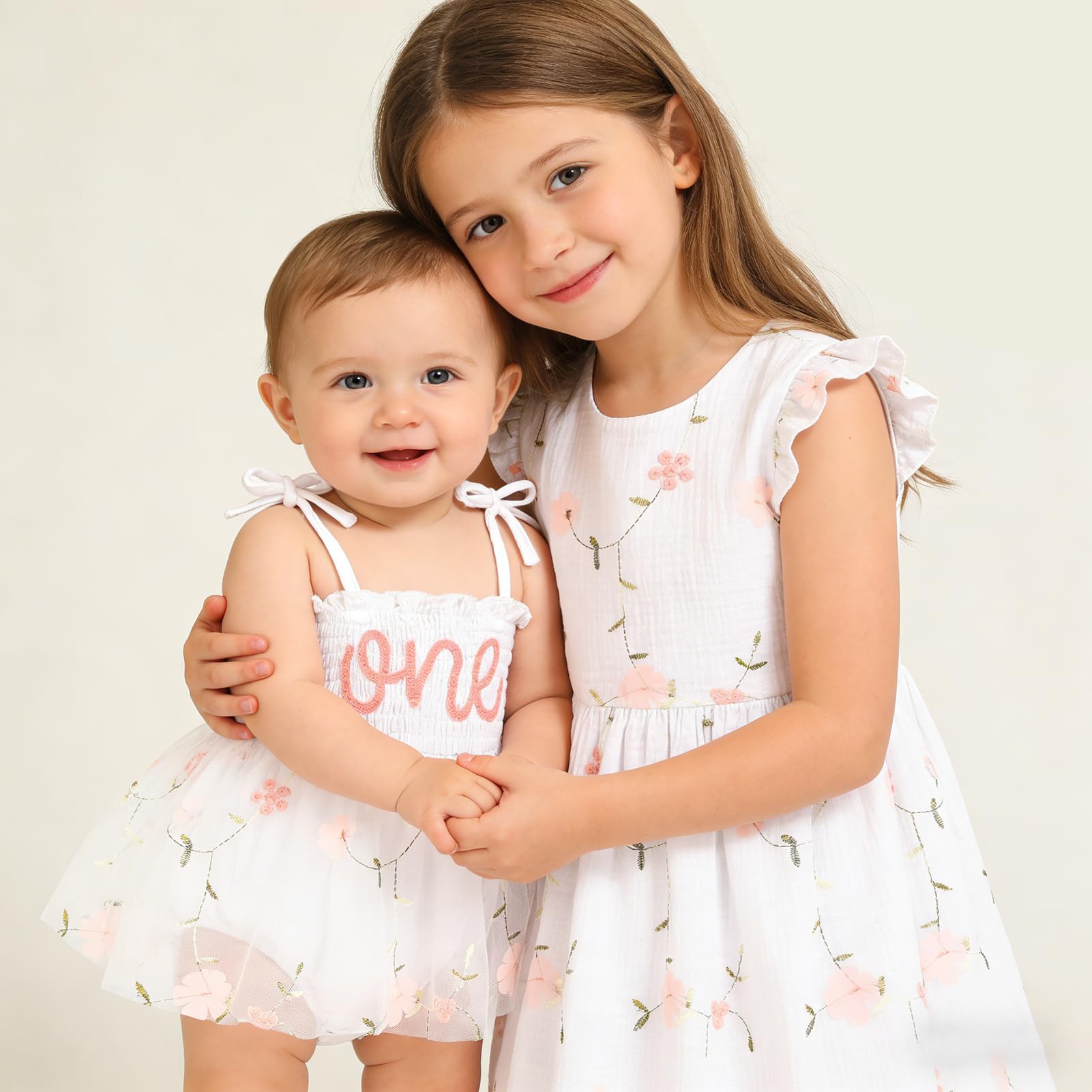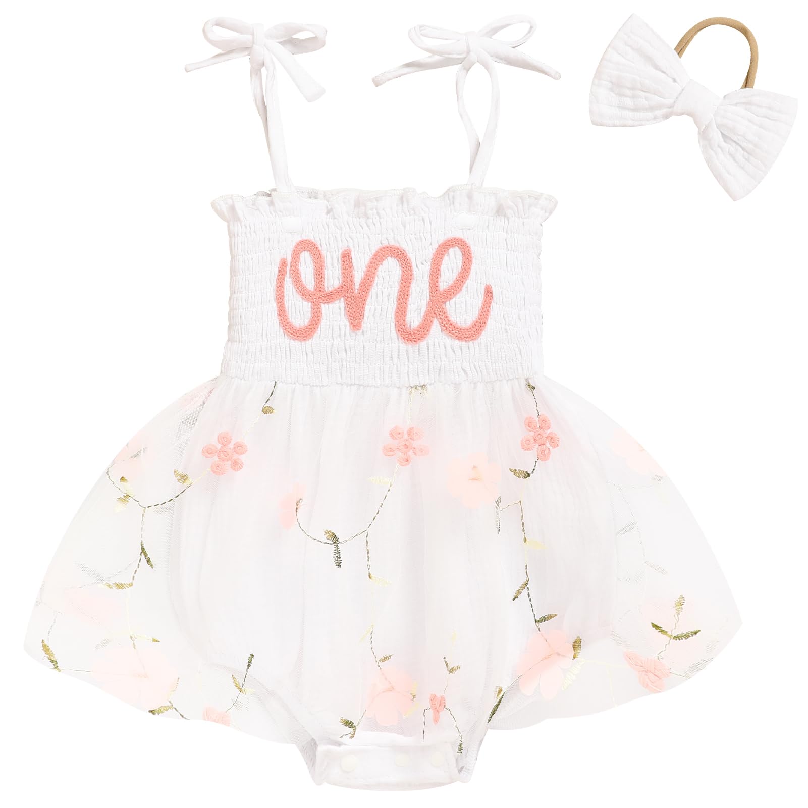 Design: Newborn baby girl playwear romper dress with sleeveless, solid color, multi-layered tulle, Snap leg openings for easy diaper changes, easier morning for novice mother.Cute princess 1st birthday outfit, fashionable and adorable embroidery ONE printed themed birthday clothes perfect for creating beautiful memory of her first birthday.