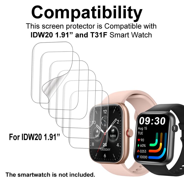 Compatible with Faweio, ENOMIR, WMK, Yoever, TOOBUR 1.91" IDW20 and lezoura T31F Smart Watch. Ensure your Smart Watch stays pristine with our premium soft screen protectors. Before purchasing, please confirm your watch model number matches to guarantee perfect fit and protection