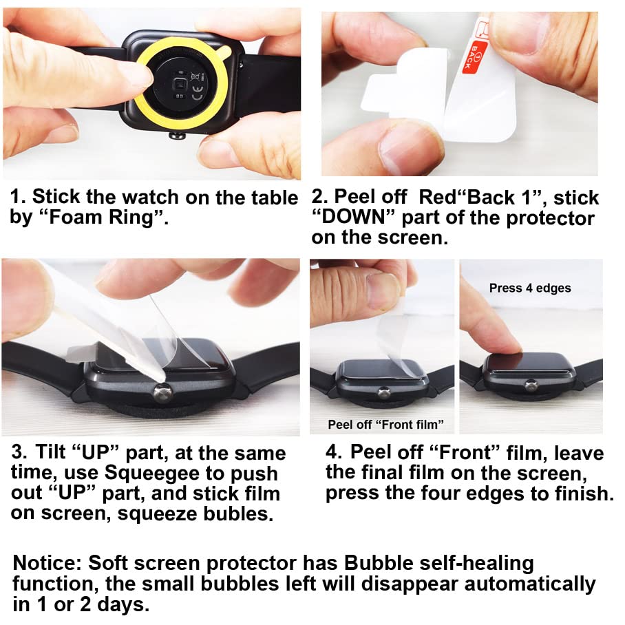 FULL COVERAGE WITH FLEXIBLE TPU MATERIAL: Crafted from soft TPU with shape memory technology, this protector hugs every curve and edge of your smartwatch screen, providing comprehensive protection against scratches, impacts, and daily wear.