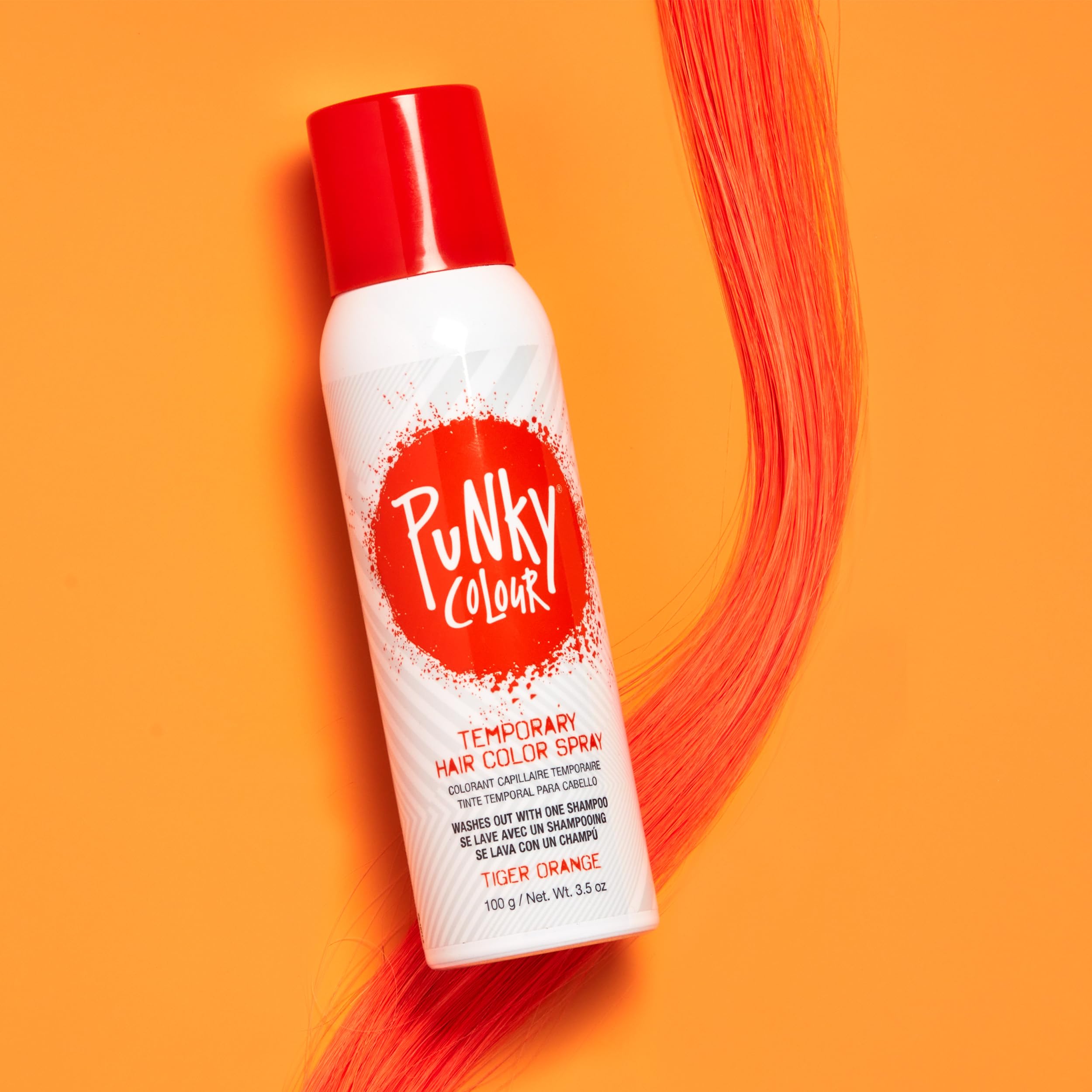 Punky's Vibrant Spray-On Temporary Hair Color: Rock the hottest hair color trends with none of the commitment! Amp up your style with a tiger orange hue that easily washes out in one shampoo. Can be used for all-over color or to create accent streaks.