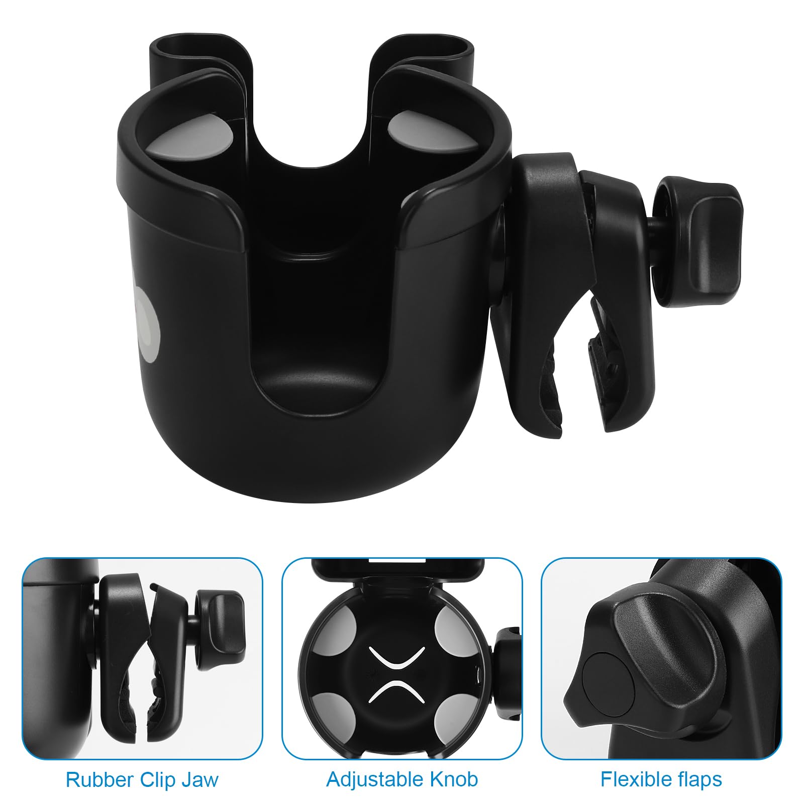The clamp designed with rubber pad, it helps lock the cup holder onto the bar without movement. The clamp can also rotate 360 degrees, and it is adjustable to fit different size handle which diameter is 0.55-1.7 in / 1.4 cm- 4.5 cm.