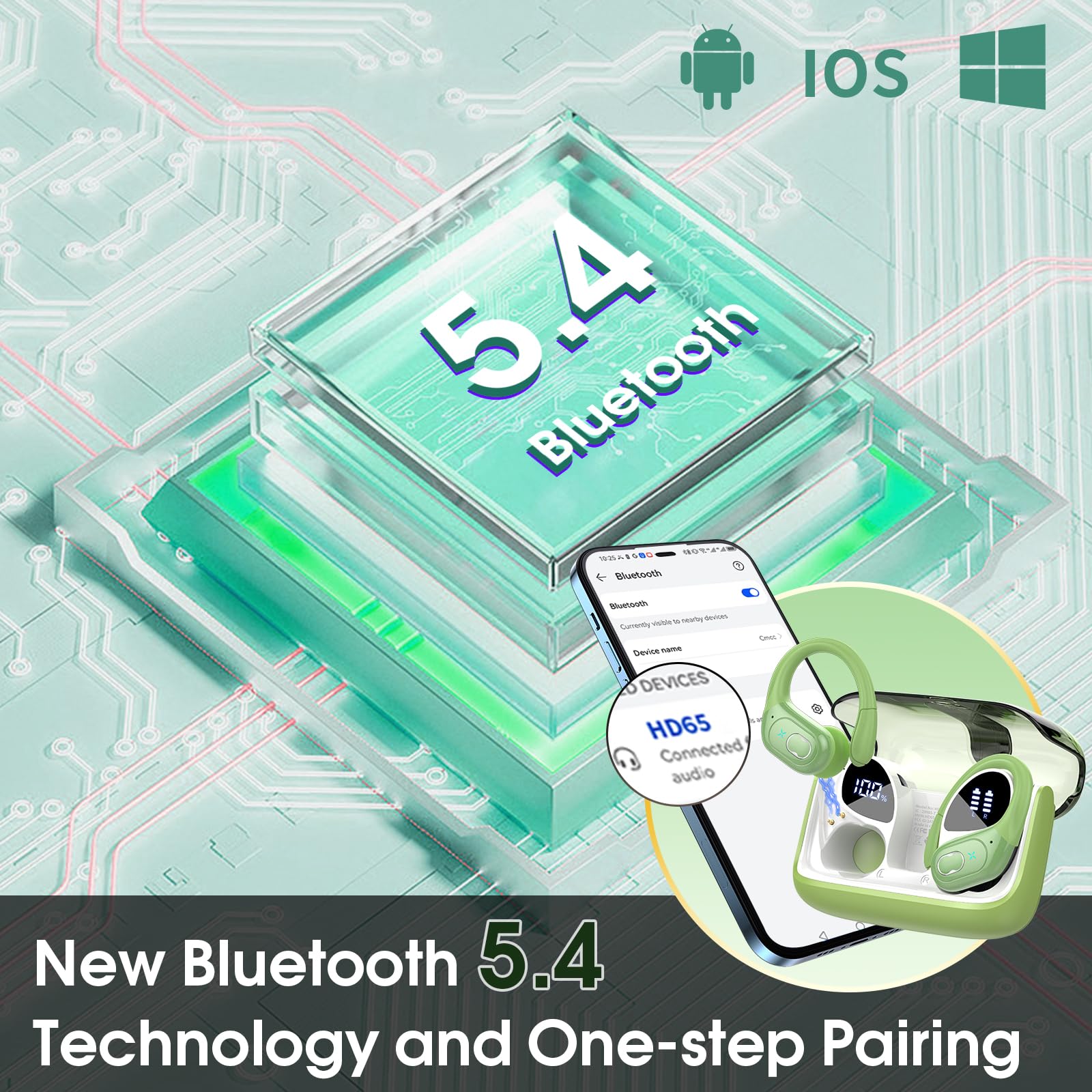 Leading Bluetooth 5.4 Technology and Easy Pairing: Features with the advanced Bluetooth 5.4 chip technology, Aptkdoe HD65 wireless headphones support HFP A2DP HSP AVRCP, which provides instant pairing and stable transmission without interruptions, with a stable connection distance of up to 33ft. The moment you open the case, the earbuds instantly and effortlessly pair with your previously connected device, sparing you from the hassle of manual pairing and long connection times.