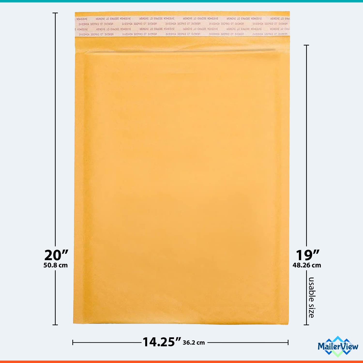 14.25x20 Inches, Bubble Mailers, #7, Extra Large, USA Made Kraft, Padded Envelopes, Packaging, Shipping Envelopes with Bubble, Padded Mailers, With Self Seal Tape, Usable size 14.25x19, 50 Pack
