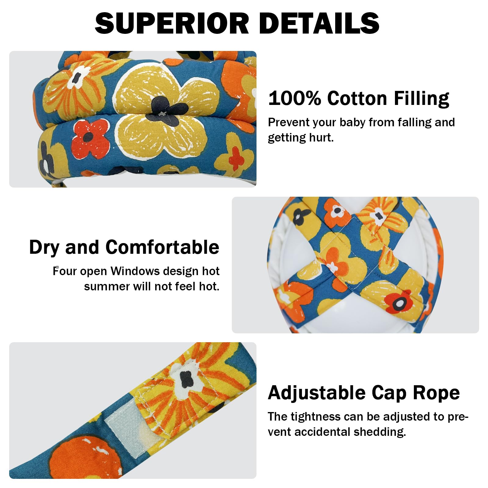 You know? Reports by the World Health Organization and the United Nations Children's Fund show that more than 2,000 children die every day from unintentional injuries around the world, and tens of millions of children are permanently disabled every year due to unintentional injuries. Baby Anti-collision Cap primarily feature crash-free cushioning and bumper caps are specifically designed to fit most babies' heads while providing maximum safety and comfort.The helmet is perfect for babies who are not yet sure-footed as they develop their newfound mobility.360 protection for the baby's head.The outer layer is made of Cotton, the fill-in layer is elastic sponge with has shock resistance, shock absorption, and friction resistance.Avoid injury when learning to walk near baby hardwood floors, tiles, patios, or hard furniture. Hand & Washable: Easily clean any stains off by hand washing your child's helmet with soap and water. Adjustable 14.57-22 inch circumference is specially designed to suit any size of infant head.